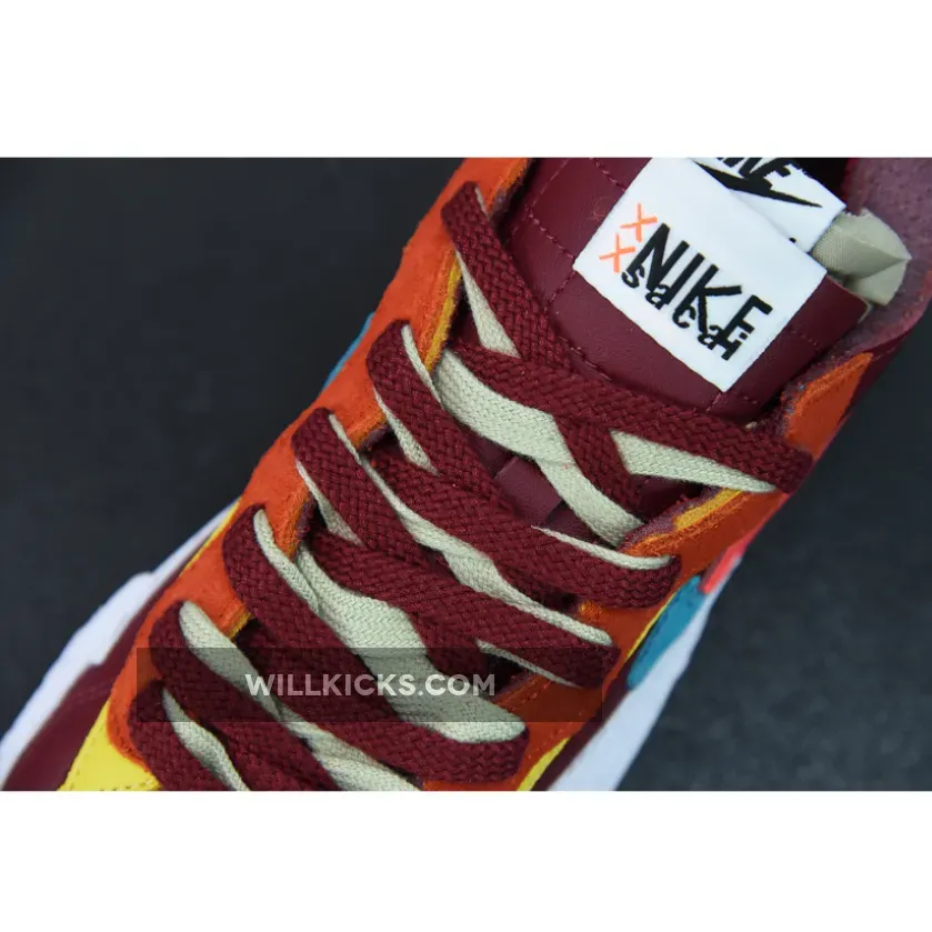 The latest iteration of Chitose Abe‘s overbuilt Blazer design, the shoes feature a premium leather base paired with layered shoelaces, tongues, eyestays and midfoot Swooshes for a stacked design. Additional branding comes in the form of tongue tags, printed insoles and KAWS’ “XX” motif.