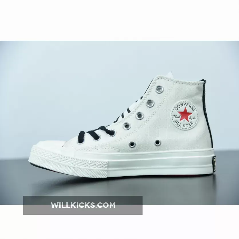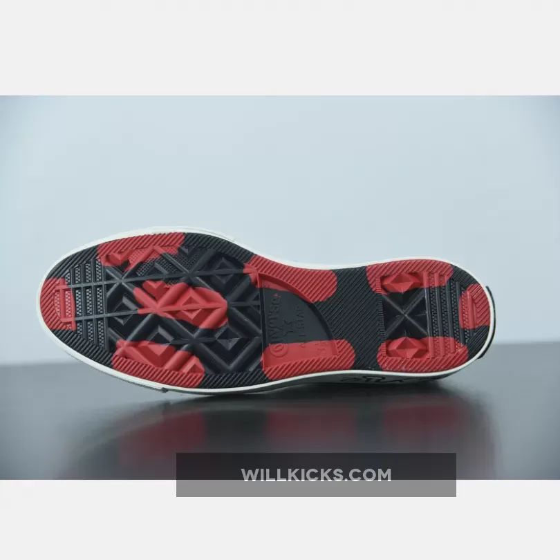 Keith Haring’s inclusive art gets a bold new canvas – the Chuck 70. Paying homage to his iconic drawings chalked on the vacant billboards of the New York subway, embroidered black and white graphics liven up the organic canvas upper, depicting his pop art figures with hits of red. Haring’s signature is screenprinted across the tongue, finishing the look alongside crafted Chuck 70 details like flat cotton laces and a vintage license plate.