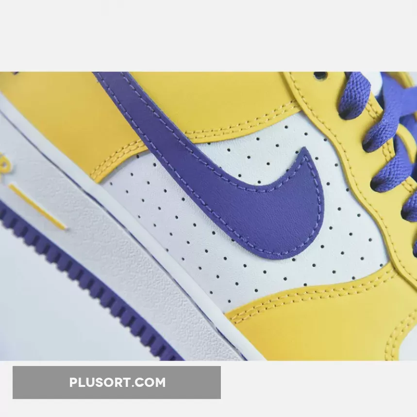 Nike gives the sneaker a full leather upper consisting of a White base that is then paired up with Varsity Maize overlays, and Purple accents on the laces, Swooshes, mesh inner lining, and rubber outsole.