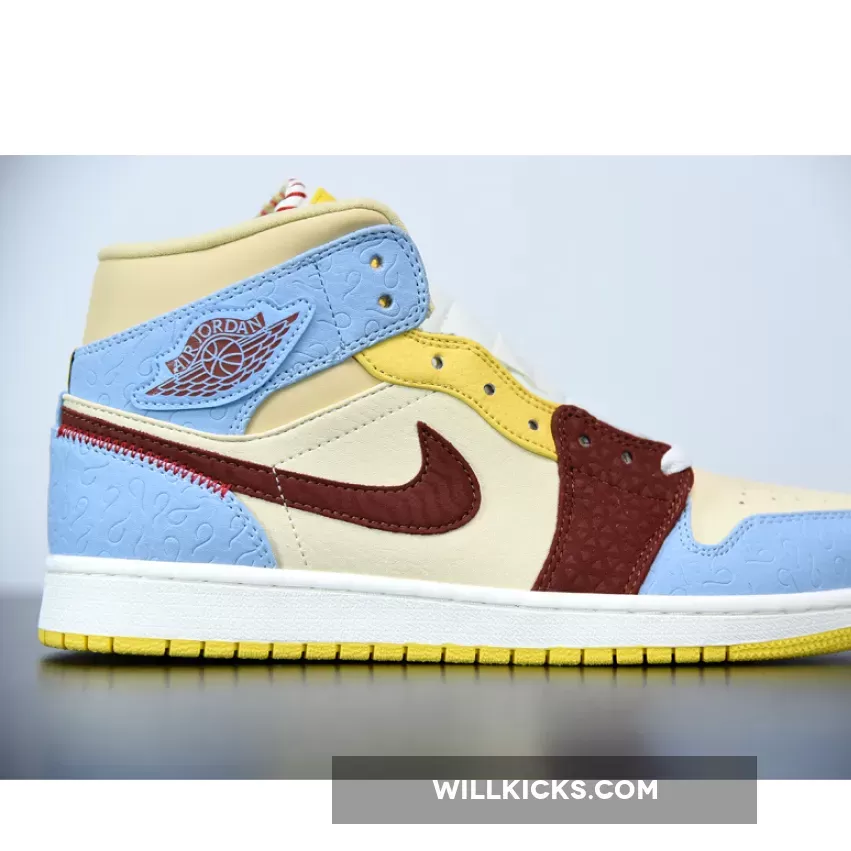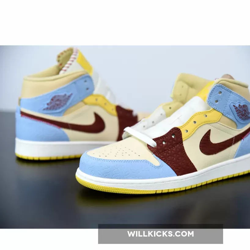 Solid colour scheme and stitched details make these Air Jordan 1 Mid SE ‘Fearless’ from Maison Chateau Rouge quite eye-catching. Quality materials and craftsmanship evident. Good support and traction on the court or street. A bit pricey, but worth the unique design. #AJ1MidSE #FearlessPack #MaisonChateauRouge