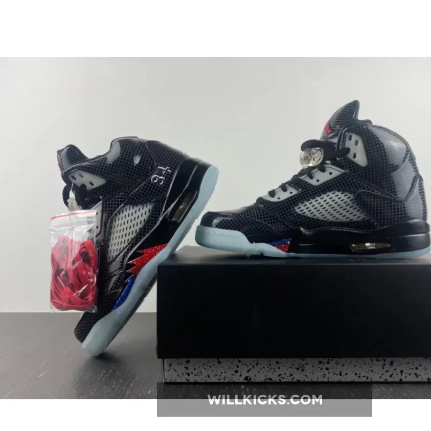 The build of this Air Jordan 5 if very similar to the Doernbecher release that includes the year ’84 embroidered on the sides as a nod to when the first episode of Transformers premiered.