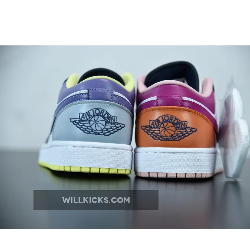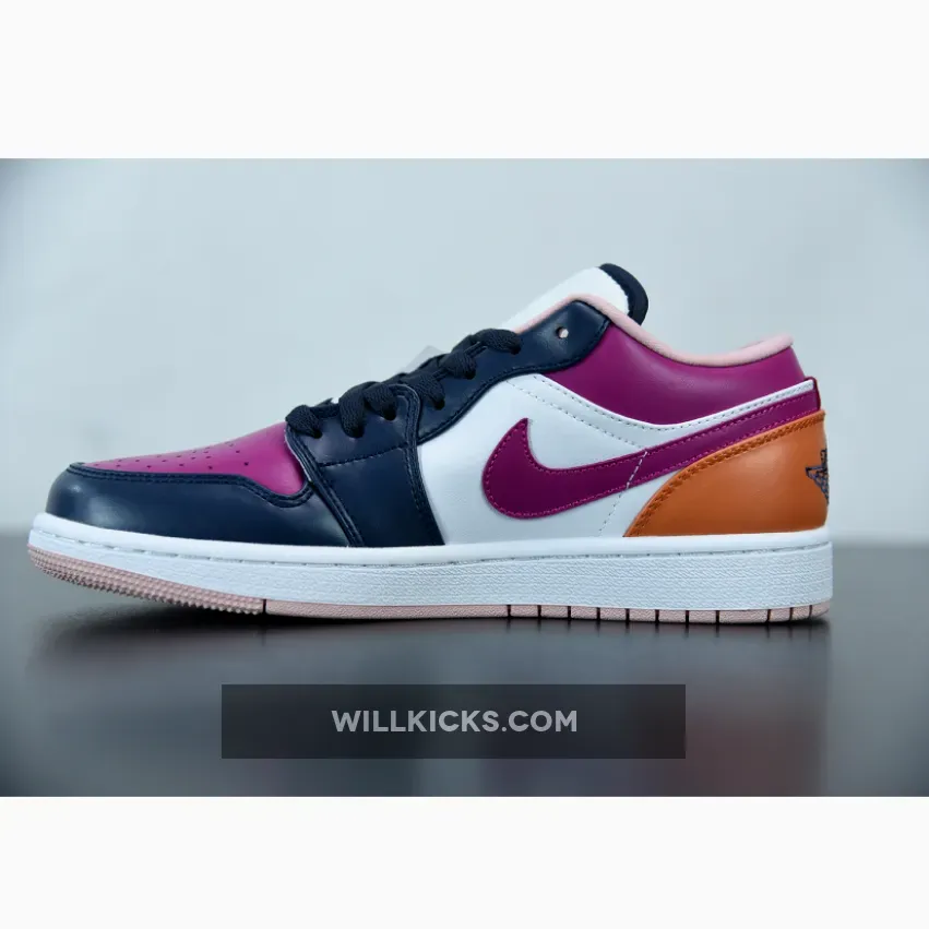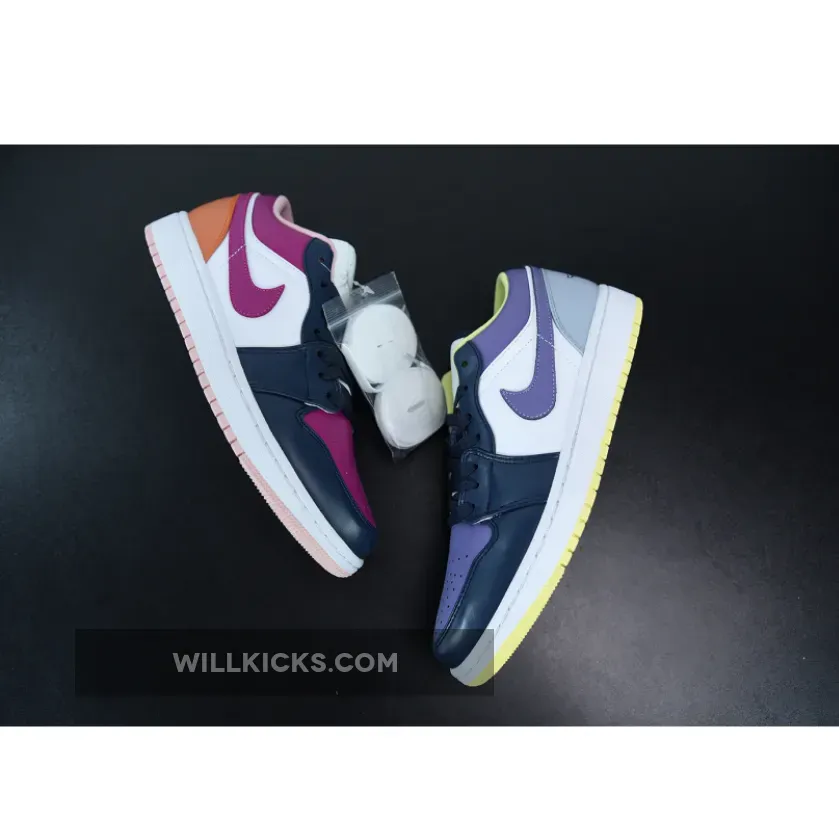 The Jordan 1 Low Purple Magenta has been one of the hottest topics in the sneaker industry recently. Official photos from the Jordan Brand have arrived here at Our Store Supplier and a closer look at the popular Jumpman silhouette shows a colour arrangement guaranteed to catch the attention of many Michael Jordan fans out there. Crafted from navy blue and pristine white leather overlays throughout, colorways of magenta, baby pink and apricot orange make their way throughout panels across the right shoe. On the other hand, the left shoe boasts shades of purple, grey and yellow for a mismatched look.Key areas of this mismatched Air Jordan 1 Low displays traditional Nike Air Jordan features such as the Jumpman insignia on the tongue and wings logo on the heel tab.The Nike Air Jordan 1 Low Mismatched Magenta Purple belongs in every sneakerheads rotation, so make sure these are on top of your wishlist. Also, know how they fit is essential so use our Jordan 1 size guide for detailed sizing information. While you’re here, keep it locked in right here at Our Store Supplier if you do not want to miss Jordan releases.