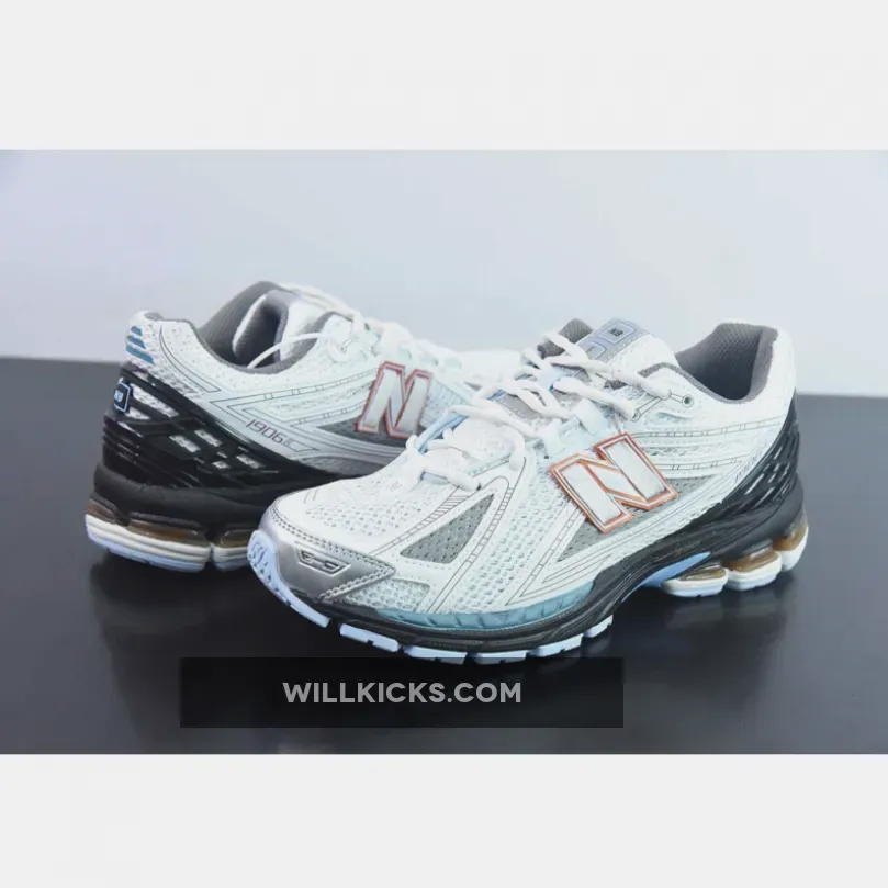 Retro running sneakers are back in the spotlight, and brands like New Balance do it best when reintroducing archival silhouettes. The NB 1906R showcases a significant design overhaul than its original 2010 variant; this version borrows the midsole tooling of the New Balance 860v2, another retro running shoe from the early 2010s. This colourway equips the modern-day retro runner with a clean white and grey mesh base with synthetic leather reinforcements. Dark shades cover the rigid heel counter and ABZORB midsole for a contrasting approach. Bronze accents highlight the “N” logos on the sides and the SBS midsole pillars on the heel. Hints of blue adorn the forefoot midsole, shank plate, and Stability Web outsole.