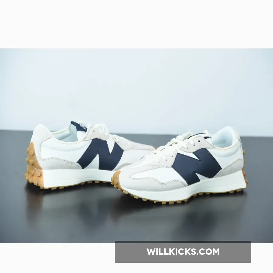 The New Balance 327 ‘Grey Navy’ is a sneaker that combines classic style and comfort with a retro vibe. It has durable materials and a stable design that stands out. It mixes modern and ’70s looks for a unique sneaker that suits any occasion. The New Balance 327 is inspired by the ‘70s, when running shoes became more than just shoes. It transforms the old-fashioned wedge shape, the big ‘N’ logo, and the rugged outsole into a fresh and innovative sneaker that redefines our running legacy.