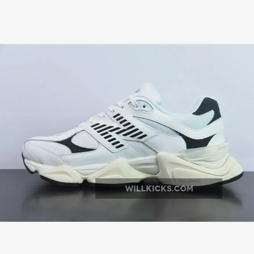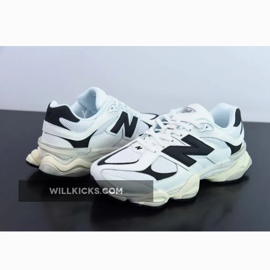 The New Balance 9060 White Black sneakers are a failsafe monochrome option. They feature in a White and Black color blocking. This offering of the New Balance 9060 comes constructed with a perforated leather base with smooth leather and suede overlays.. The plush N appliqué, placed off-kilter in signature fashion, picks up on the black shade again and the outsole follows suit, too. Subtle branding lands on the heels via black-on-black logo embroidery, while the style name tracing the tongue and N-lettered throat make things more explicit. The eye stays are spliced in the middle to add to the layered design. Finally, a soft beige hue enters via the faceted midsole which provides ample cushioning at the right places.