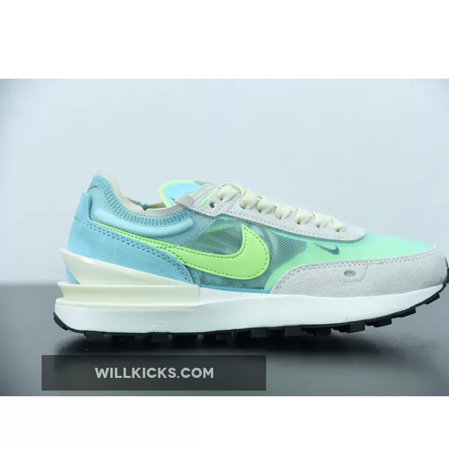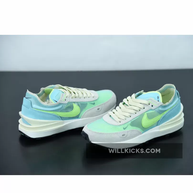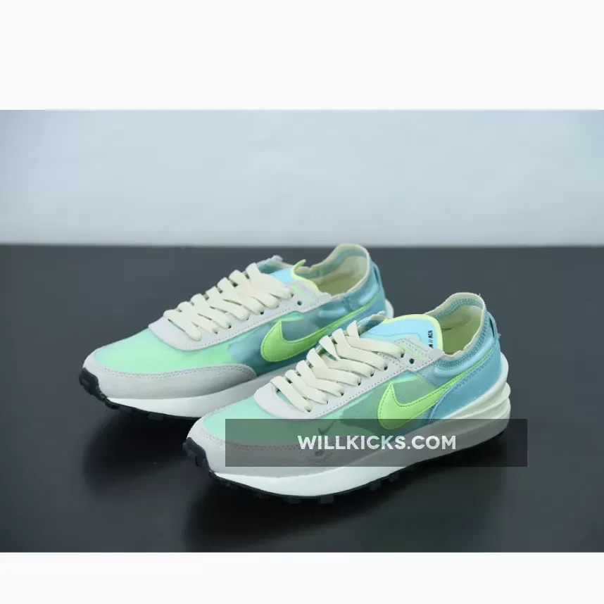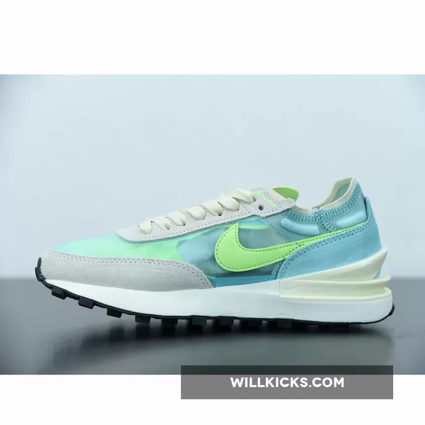 We’ve got the success of the Nike x sacai collaboration to thank for the revival of the iconic Waffle One silhouette. For this latest iteration, you’ll find a sleek transparent mesh in a bright green and Aqua, which ties in nicely with the pastel green Nike Swoosh on top. That iconic Waffle midsole comes stacked in cream, and paired with a black outsole that’s updated with moulded lugs, for traction and support. Suede overlays continue this premium aesthetic, while the neutral laces follow suit.Cop the Nike Waffle One Green Blue for a fresh new Nike sneaker that’ll become your next conversation starter. And for more Nike releases, restocks and news, stay locked in here to Our Store Supplier!