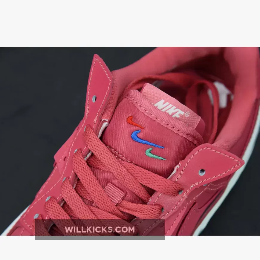 Dressed in a Archeo Pink and Summit White color scheme. This offering of the Nike Air Force 1 Fontanka features a full Archeo Pink upper built with a layered aesthetic. Red, Blue, and Green mini embroidered Swooshes on the tongues, a White “cassette” Nike React cushioning in the heel replaces the ZoomX that was used on the Fontanka Edge atop a solid Summit White rubber sole completes the design.