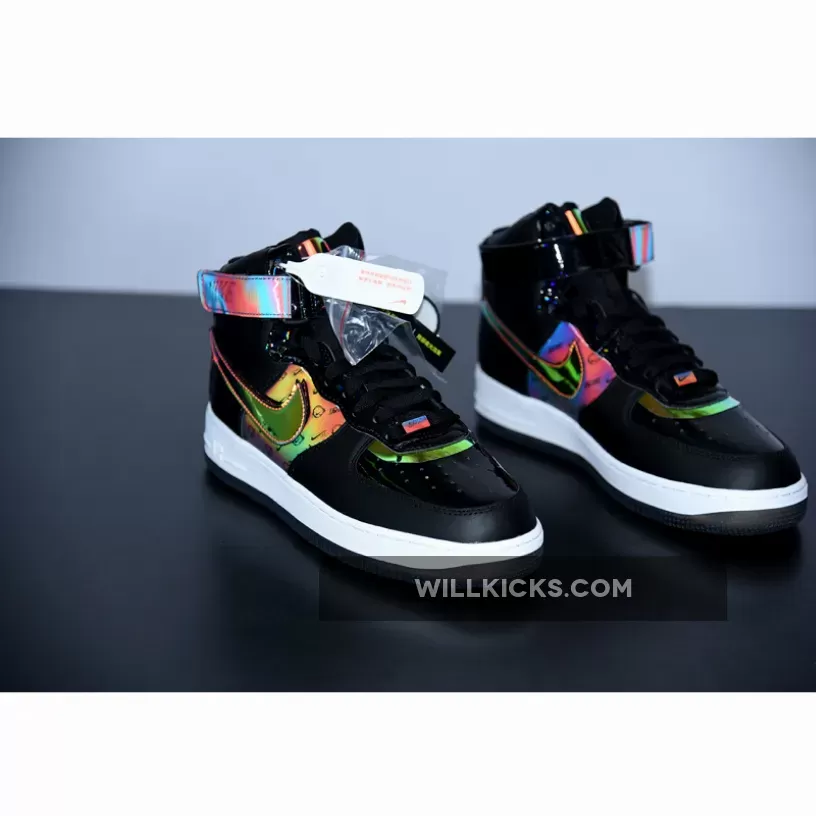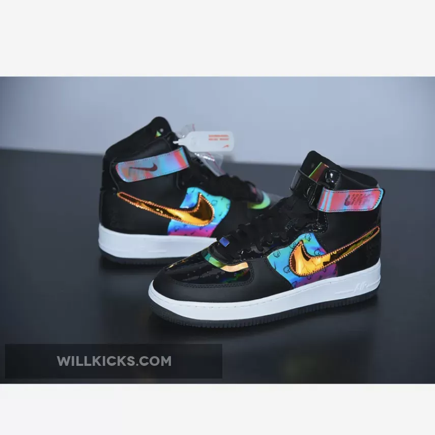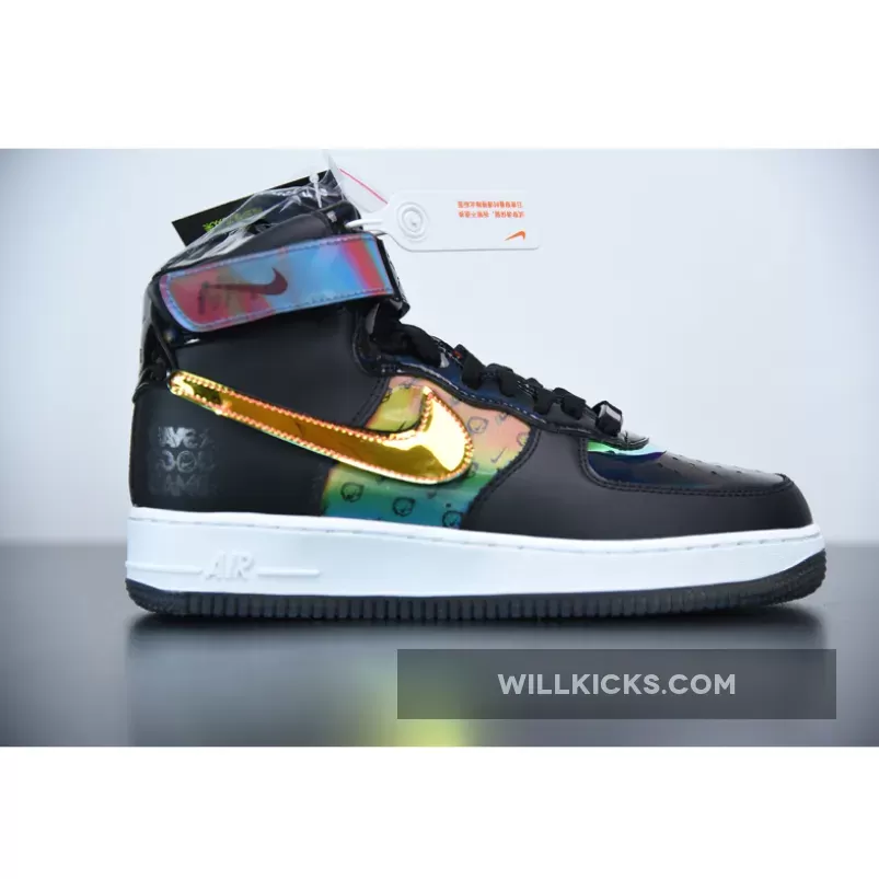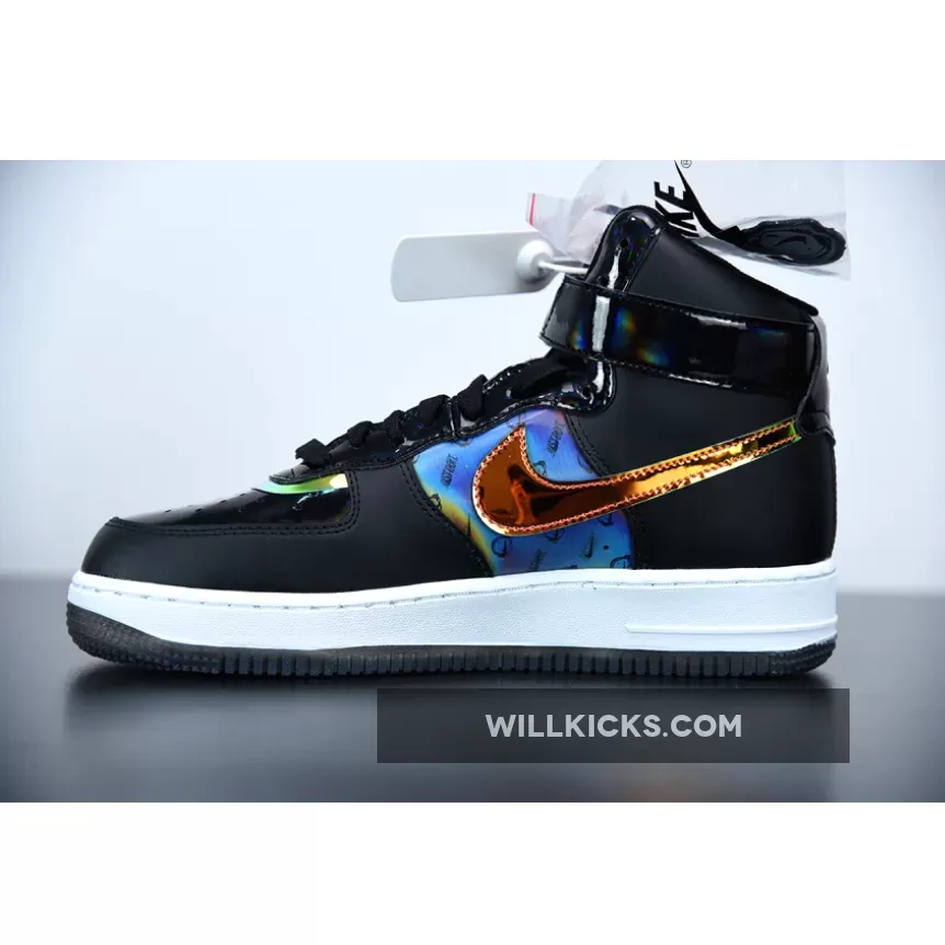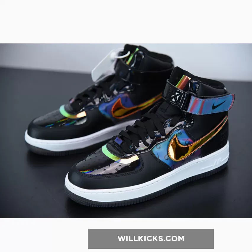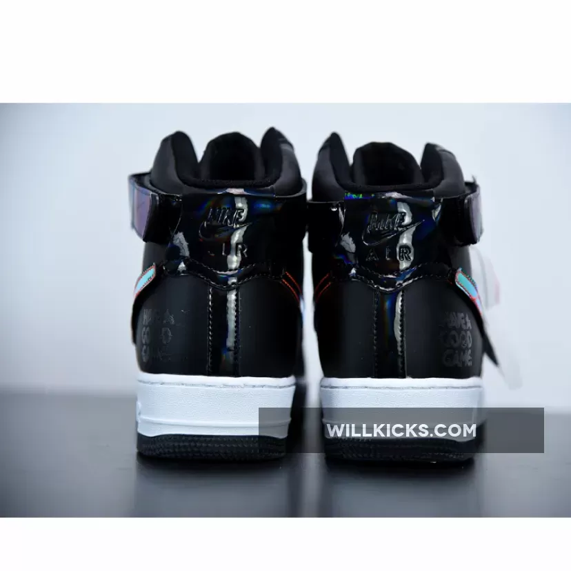 This Nike Air Force 1 High utilizes different materials which includes patent leather, velcro Swoosh logos, smooth leather and iridescent accents. Highlighting this pair is ‘Have A Good Game’ on the lateral side by the heel. Other details includes repeated Nike branding on the panels, White on the midsole and a translucent outsole finishes the look.