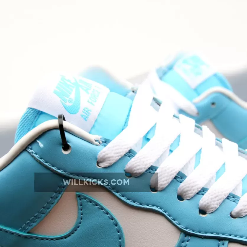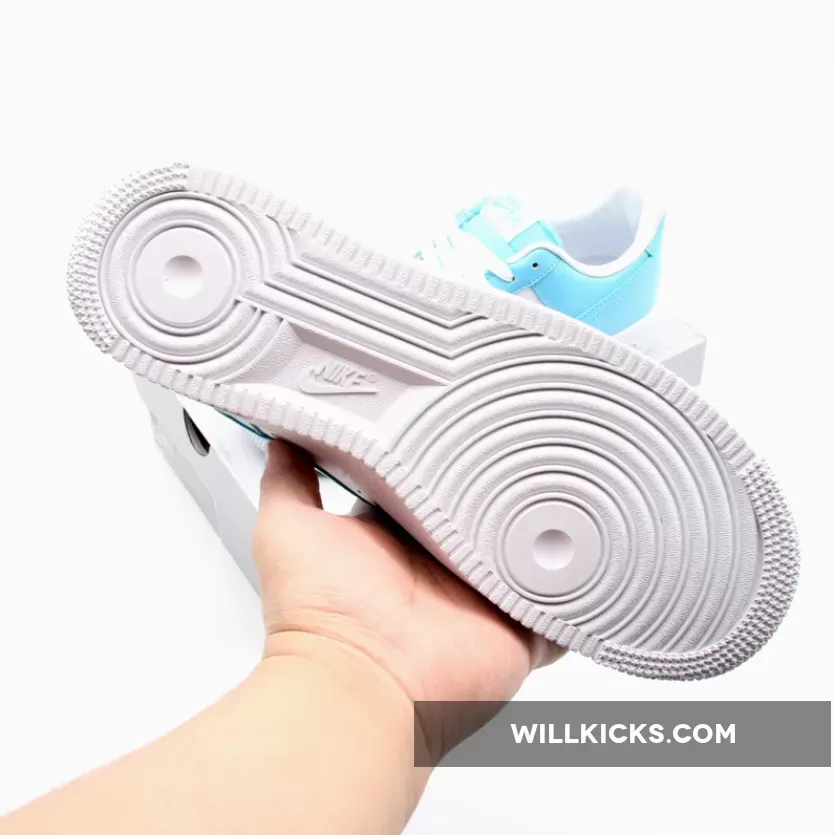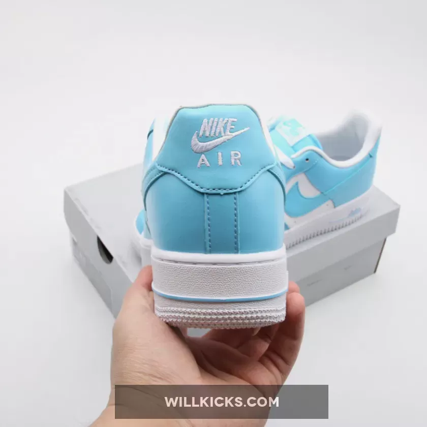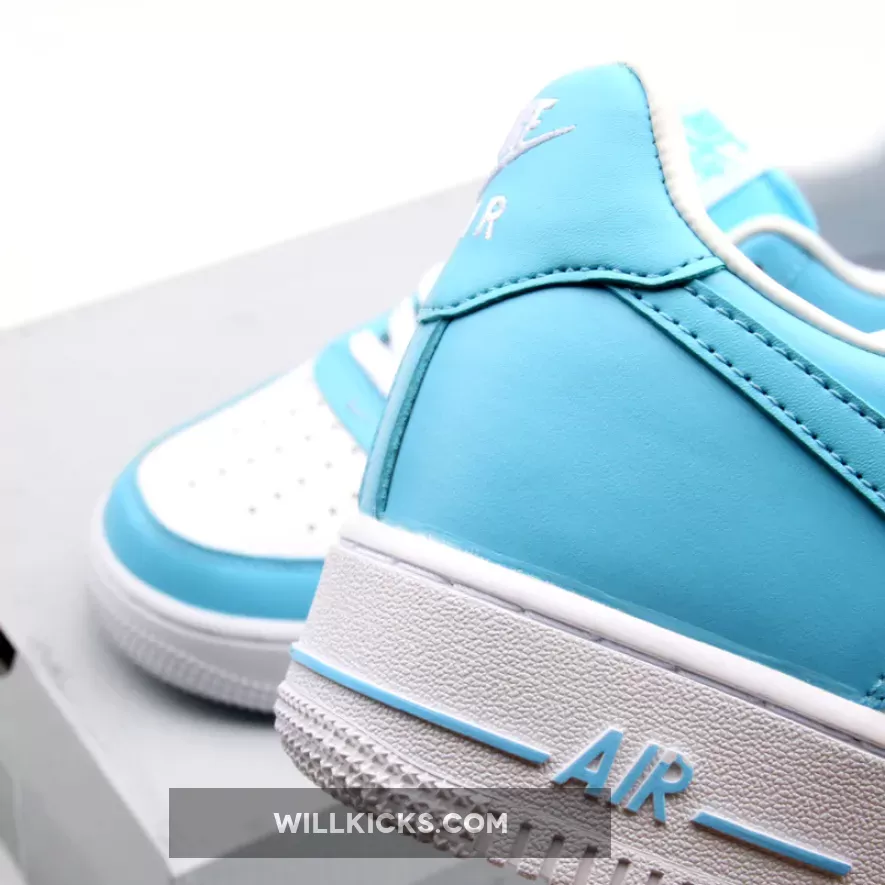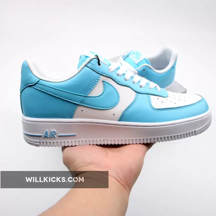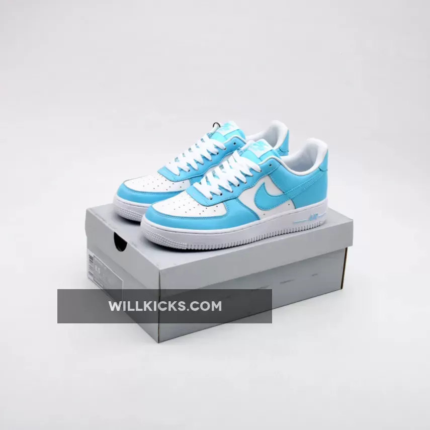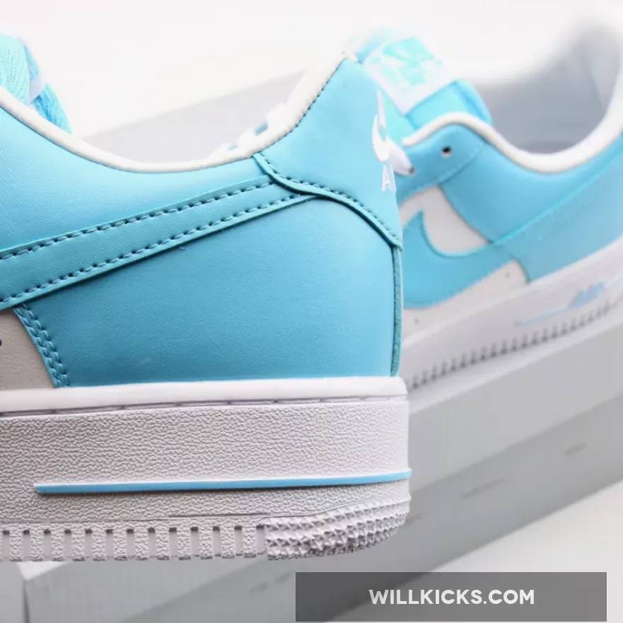 This Nike Air Force 1 Low comes dressed in a Blue Gale and White color scheme. It features a full leather upper with perforated detailing on the toes and sides. A signature AF rubber sole completes the design.