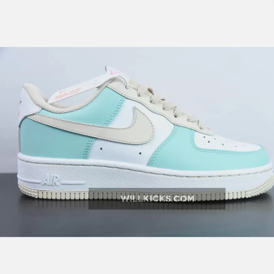 The former is served on the upper, and midsole, while minty green leathers coat the toe and heel. Creamy tints take over the soles, Swooshes, eyestays, and liners, as well as the nylon tongue and its laces.Nike branding in pink is found on the tongue, vamp, and heel tab.