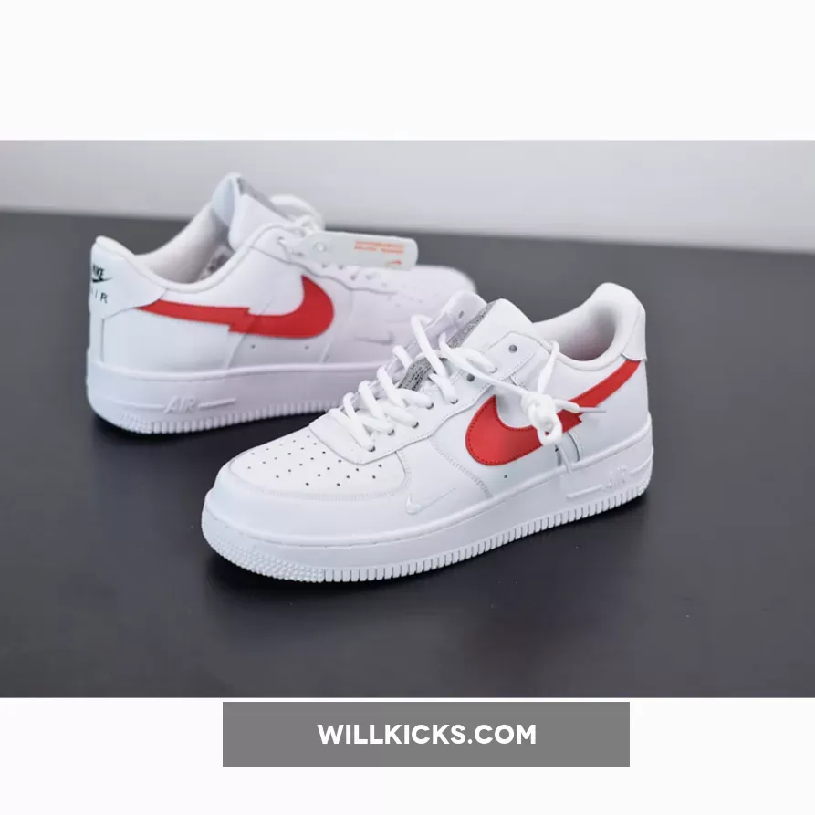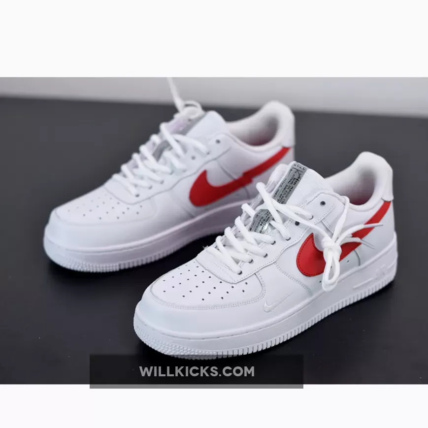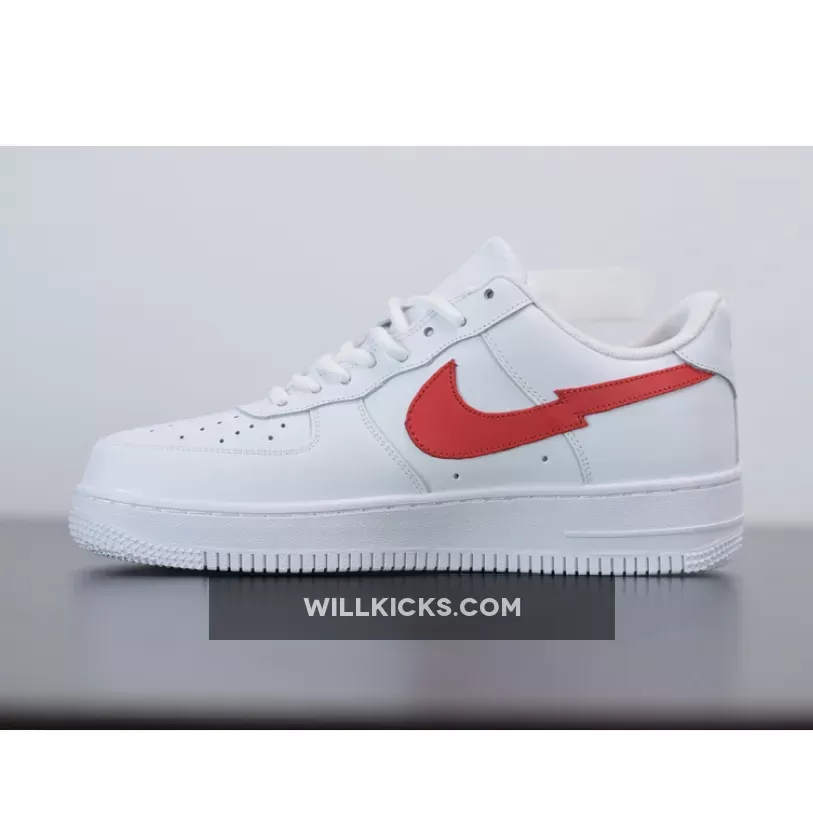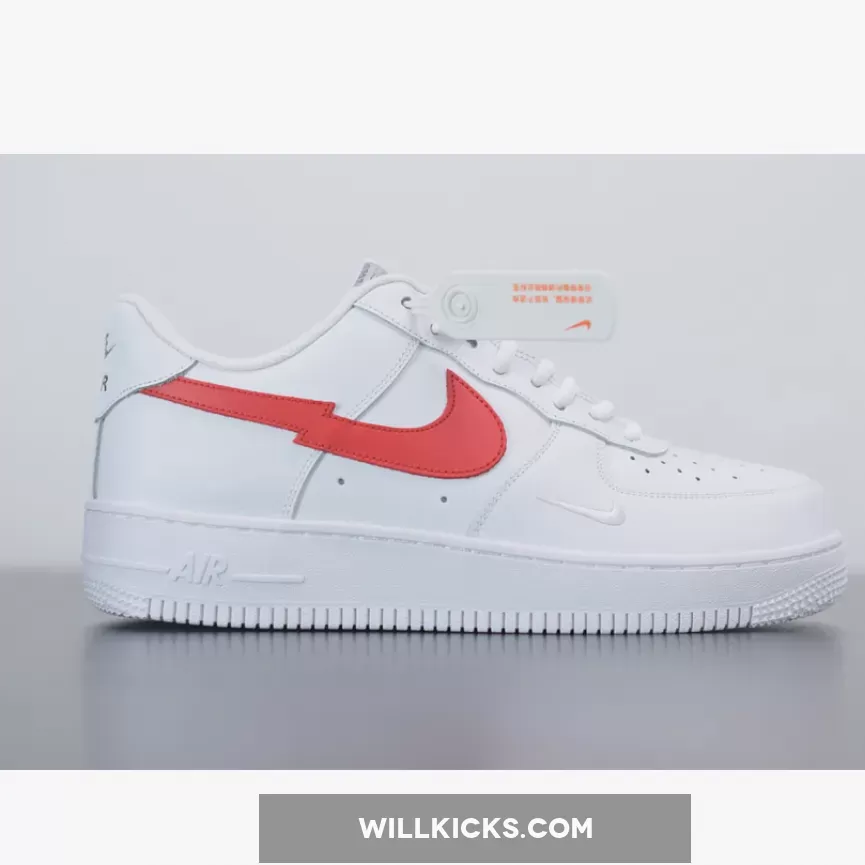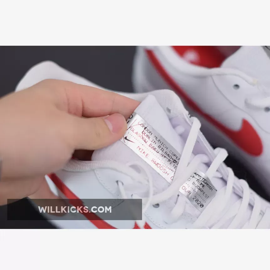 Effectively shifted by a small angle, the logo is likened to lightning bolts — a signature in the aforementioned genre — and dyed entirely red. Elsewhere, the leathers set the tone with white shading, only a small, equally understated miniature check adding further detail. At the heel tab, the pair applies the typical “Nike Air” in navy while the tongue opts for something much louder as it uses the same concert motifs against a backdrop of metallic silver.