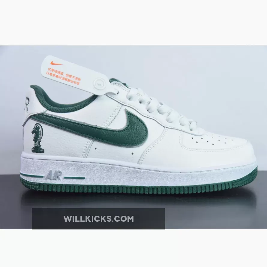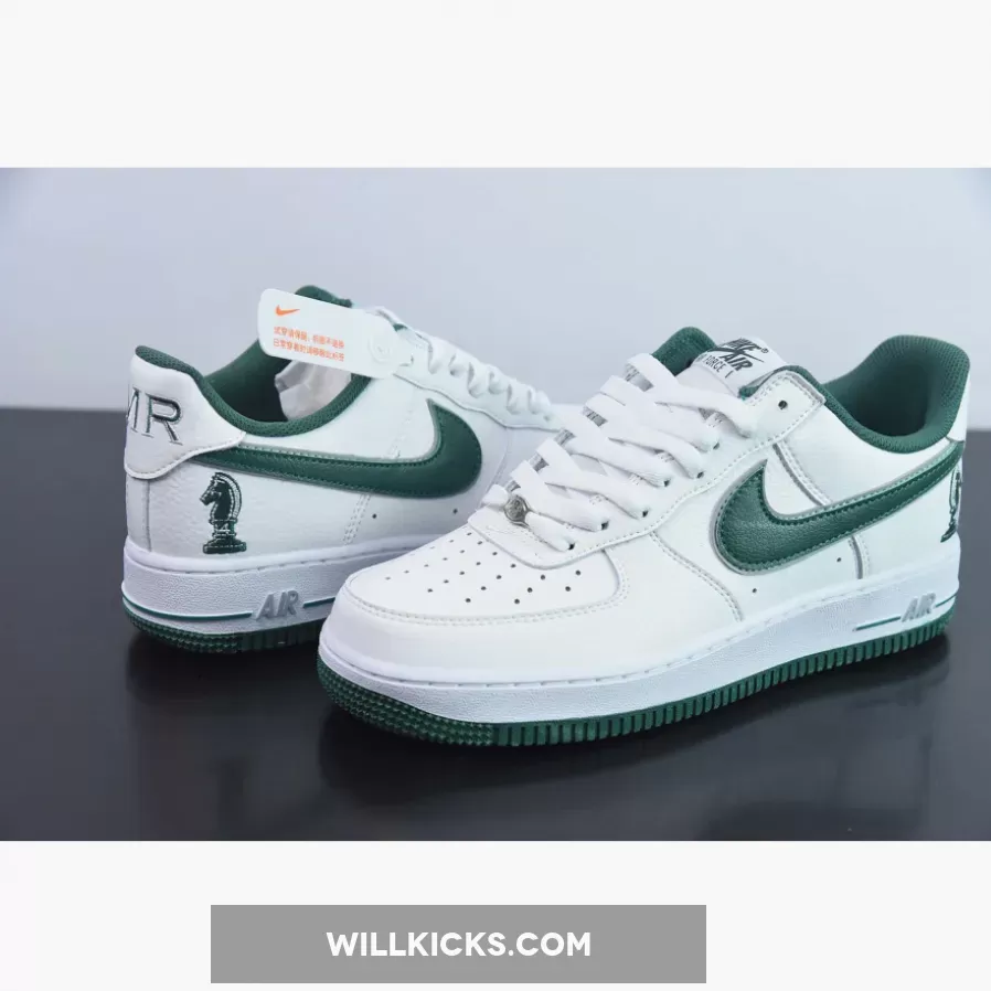 Unlike most Air Force 1s with a smooth-leather upper, these arrive with Swoosh logos fixed with a green tumbled leather textile, giving the low-top retros a premium look. Elsewhere, the chunky Air midsole unit underfoot is highlighted in a yellow shade for a pre-aged aesthetic. The award-winning feature of this iteration is the chess piece imprinted on the lateral heels, which is a nod to Lebron James’ business partners: Maverick Carter, Rich Paul, and Randy Mims, together making up The Four Horsemen. As for the rest of the counterparts, like the interior lining, outsole, Nike tongue branding, continues the white-and-green arrangement.