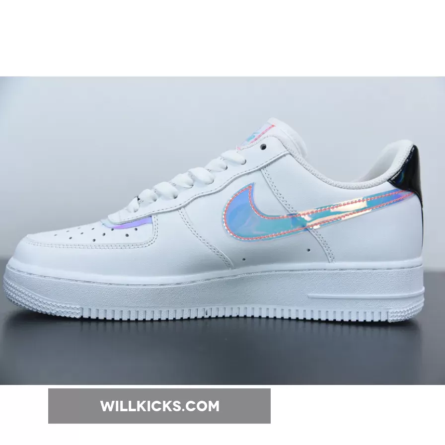Profile swooshes, however, make up for the pair’s blandness with not only their iridescent finish, but also removable build. Accents across the vamp and tongue further indulge in the color-changing effect, while “NIKE AIR” branding on the sockliner alternate between left and right shoe. Overlays at the heel boast an all-black color scheme, but partake in a glossy composition. Underfoot, sole units maintain their tried-and-tested, triple-white look.