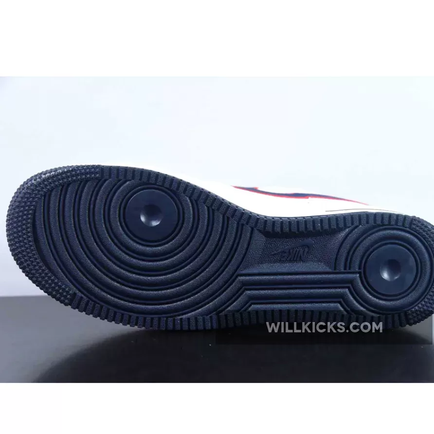 The team’s patriotic hues are used for accents across its predominantly white base by touching down on the Swooshes and heel overlays. Standard metallic silver “AF1” lace deubres are situated on the bottom of the throat, while the outsoles and midsole “Air” hits are doused in full navy. For a sleek final touch and understated nod to the dynasty, a hand holding up four fingers appears on the lateral heel counter.