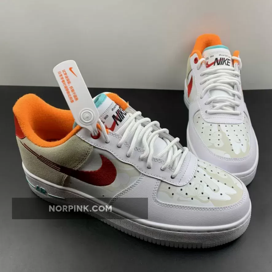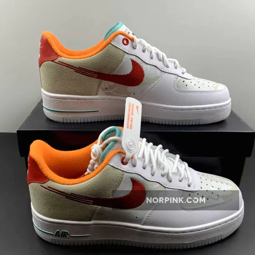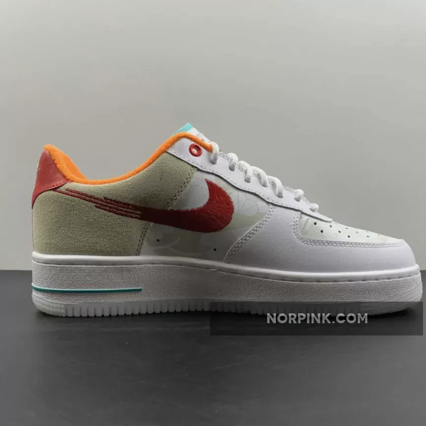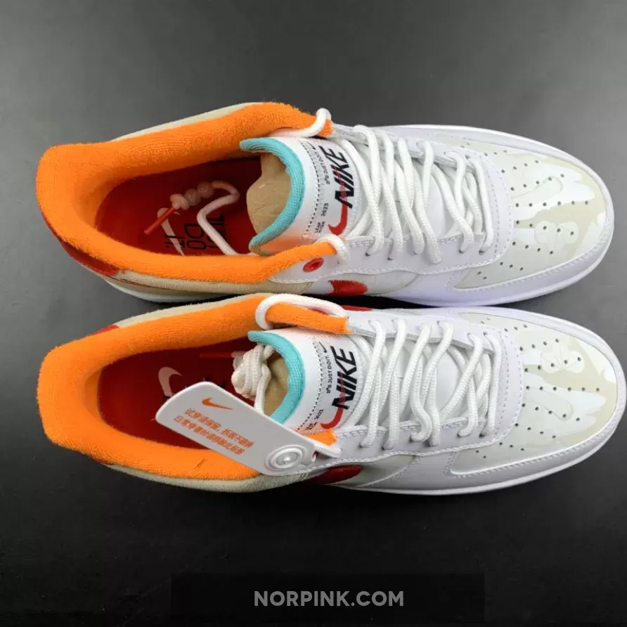 Dressed in a Summit White, University Red, White, Washed Teal, Sanddrift, and Safety Orange color scheme. This offering of the Nike Air Force 1 Low comes constructed in a mix of leather and suede materials with embroidered Swooshes on the sides. Other notable details includes hidden graphics on the toe box and side panels with special “Just Do It” branded tongues and insoles. A White midsole atop a milky marble-like translucent outsole completes the design.