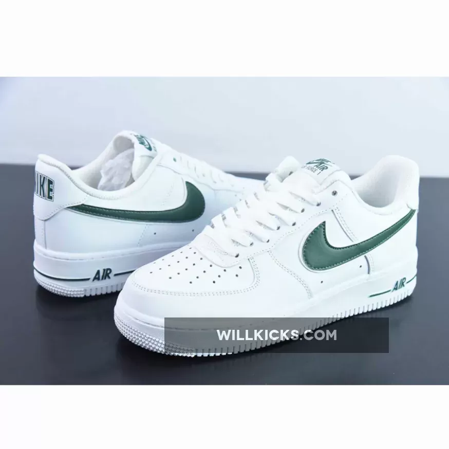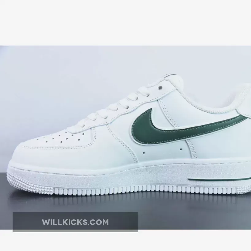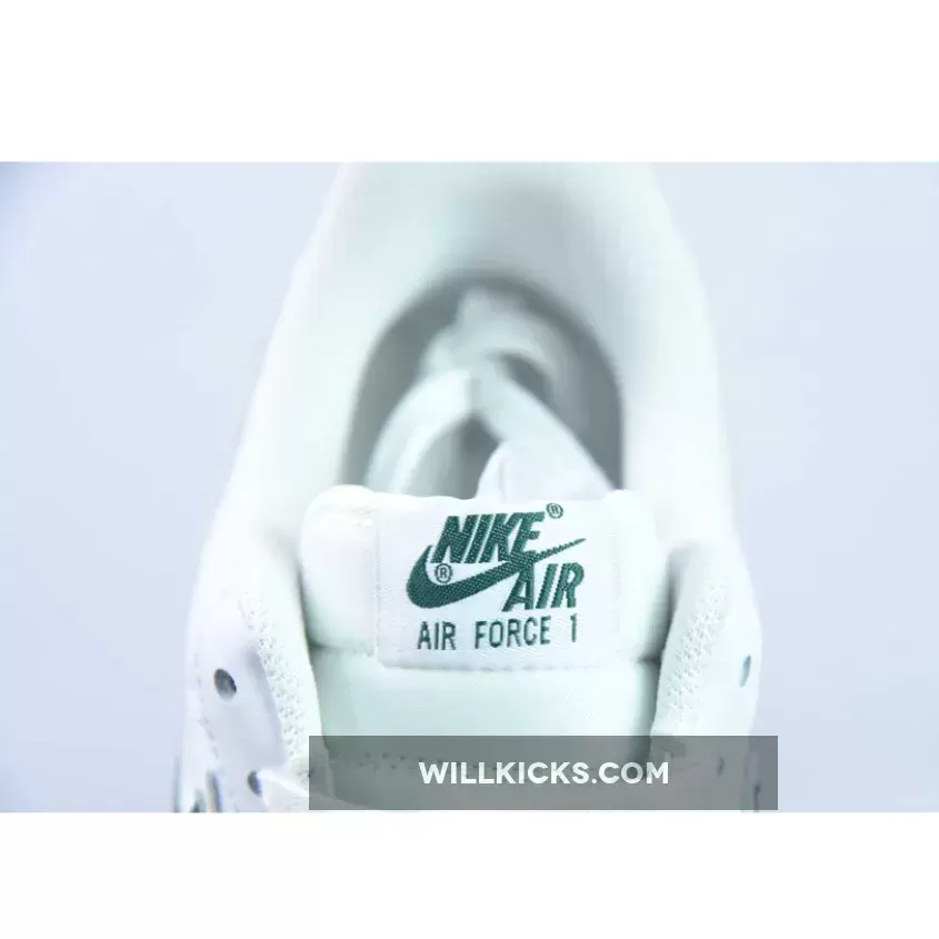 From a distance, this AF1 looks like any old ‘Triple White’ variant, but upon further inspection, you will find rich dark green detailing gracing the tongue, heel, and side panel Swoosh detailing. A varsity style font adorns the heel for a retro look, and down below, an Air infused midsole is present, offering wearers extra comfort and endless cushioning. To round it all off, classic perforations hit the toe box for the ultimate breathing experience.