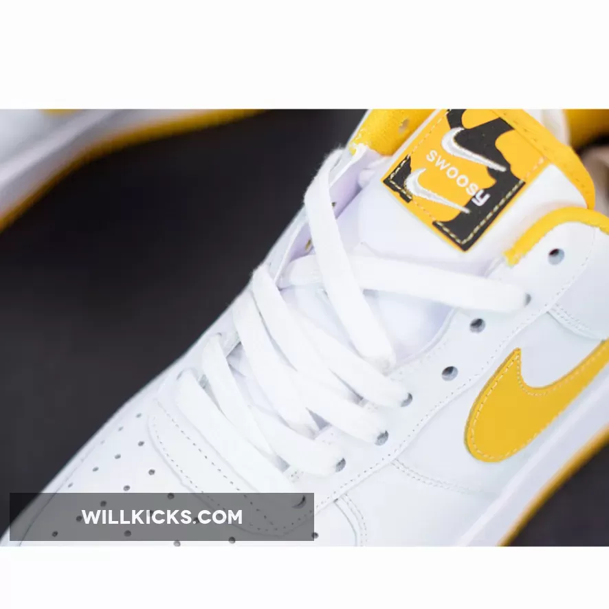 This edition of the Nike Air Force 1 Low features a White leather upper with Wheat nubuck Swooshes and heels and matching lining and rubber outsole. Highlighting the shoe are dual embroidered Swooshes on the lateral heel.