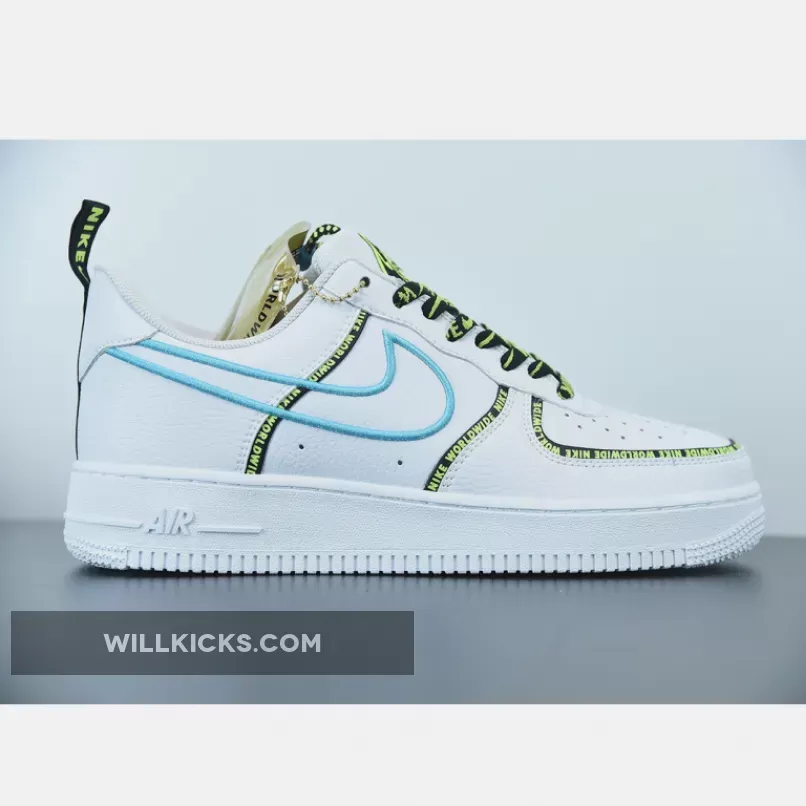The second shoe, the Air Force 1 ’07 LV8 “White Barely Volt,” takes a more conservative approach, opting for a clean white leather upper with a normative “Barely Volt” Swoosh on the lateral and medial sides. The same black and volt “Worldwide” tongue branding appears on the shoe, finally finished by “Worldwide” text in volt as well as black and white that runs horizontally from the lace cage. Both shoes come packaged with a few Swoosh stickers, a hangtag, and a special pin.