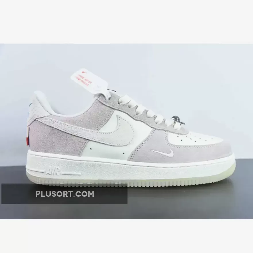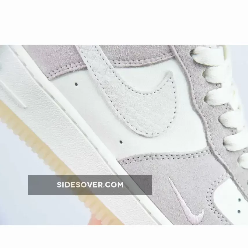 The Air Force 1 Low’s facade is a serene portrait in soft pastel pink suede, set against a backdrop of ivory leather uppers, an interplay that captures the yin and yang of tranquility and strength.