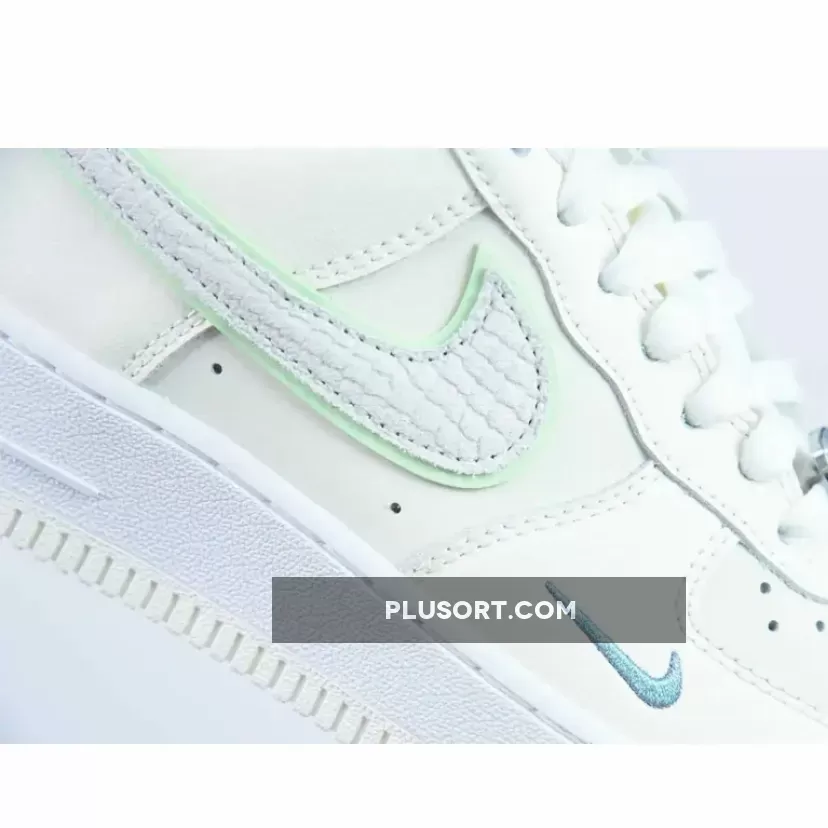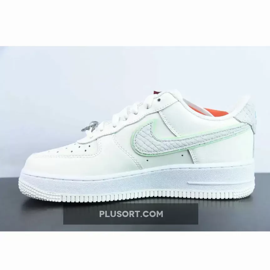 The subdued, sail-toned top of the Air Force 1 Low highlights its minimalism. However, this modest base serves a special purpose. It acts as a canvas, which enables precisely molded embellishments to take center stage. The most eye-catching of them are the swooshes with a reptilian-like feel that run across each side wall.