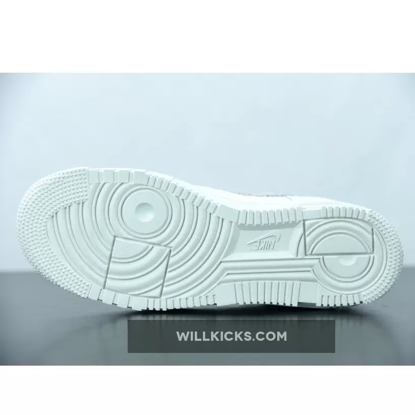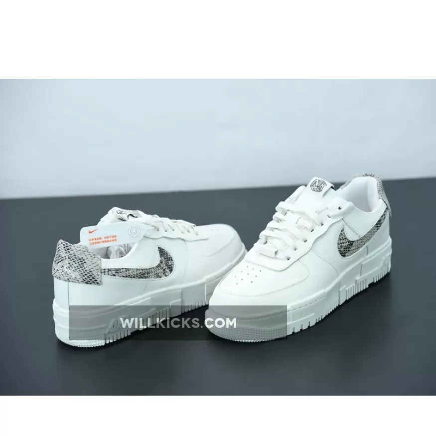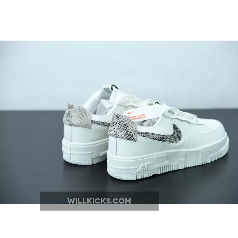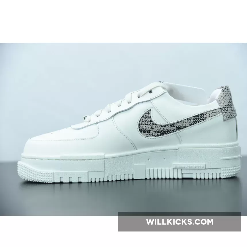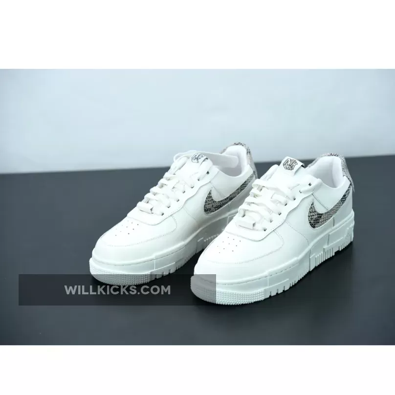 Working on a low-top profile that looks good as ever, the super-smooth leather panels from heel to toe indulge in a pleasing tone of Sail. All the traditional features that made the Nike AF1 popular are still present on this pair, such as branding details on the heel and tongue, and most importantly the perforated toe box for added breathability. What sets this iteration different from all the other pairs you see daily is the faux snakeskin textures that adorn the Swoosh logos on the side panels and the heel tabs, further accentuated and complete with a chunky midsole made up of what seems to be different sized blocks that give off a pixelated look.