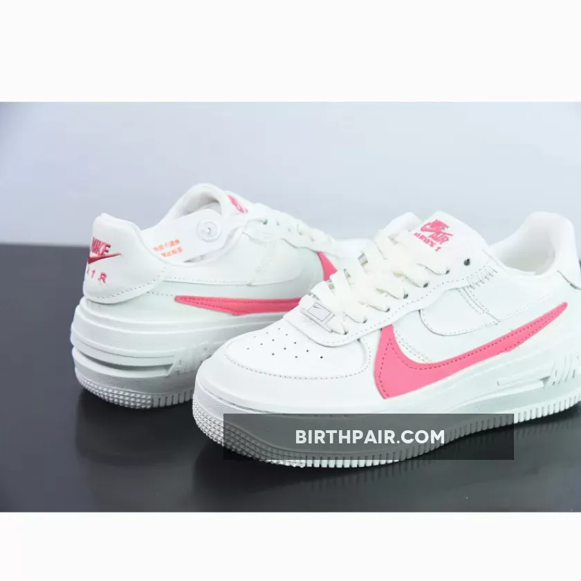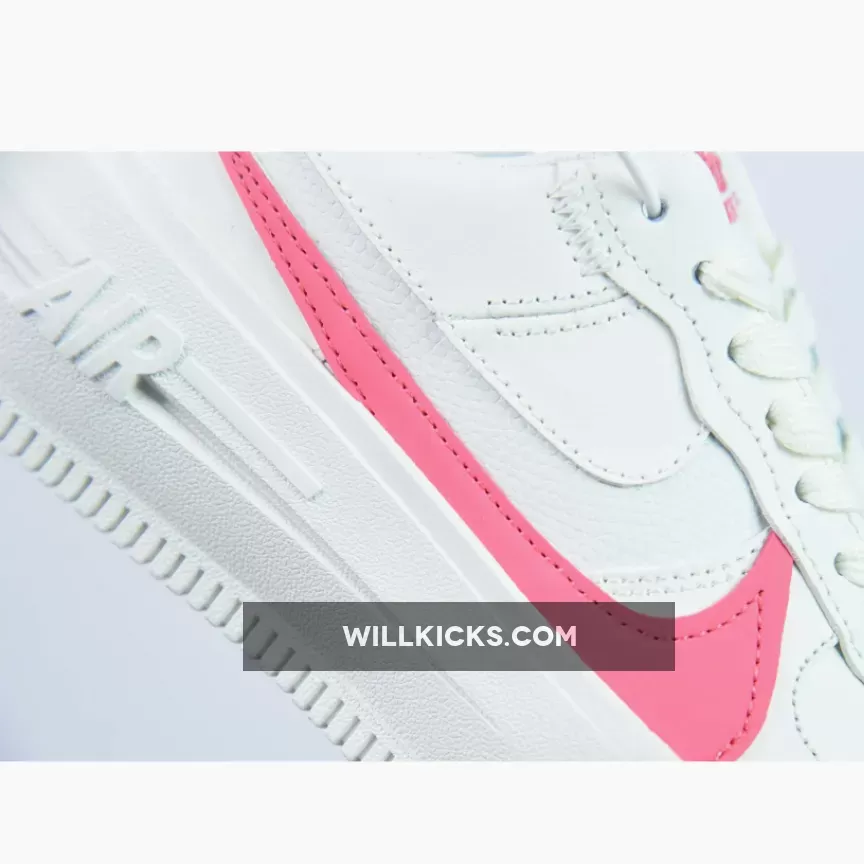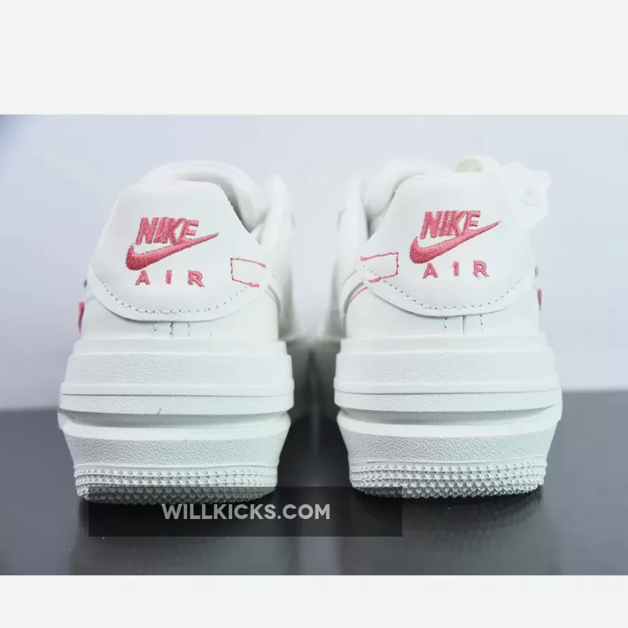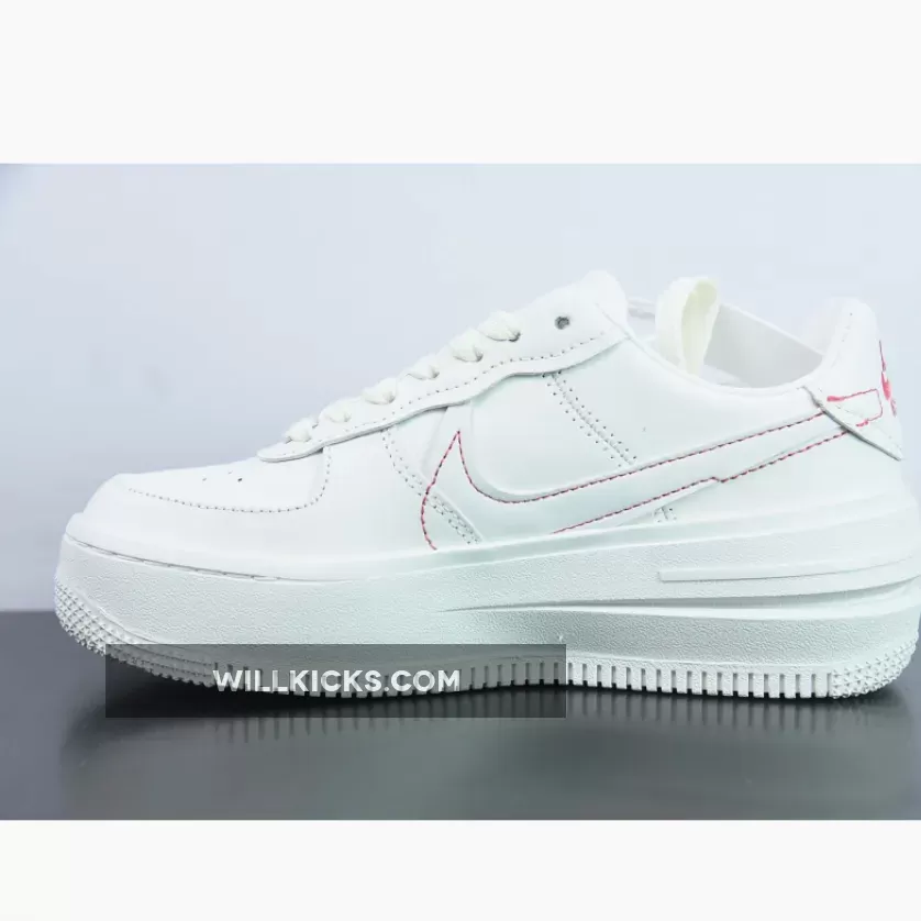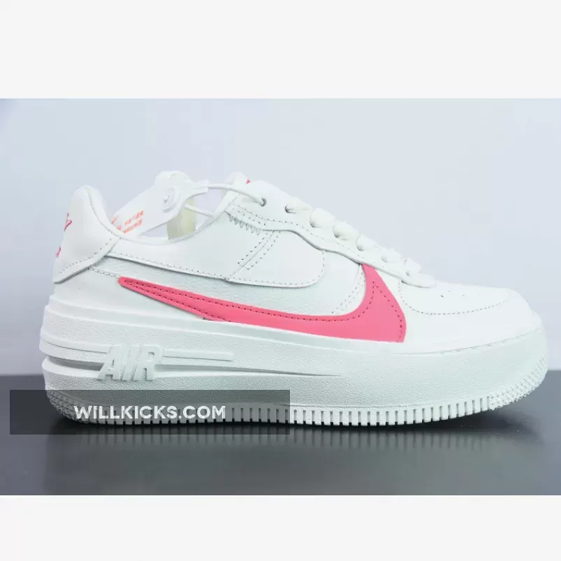 Nike’s elevated version of its perennially popular basketball sneaker, the Air Force 1 PLT.AF.ORM, has a comfy new iteration with a dash of pink. Presenting the Nike Air Force 1 PLT. AF.ORM Sail Sea Coral. This AF1 PLT. ORM has a “Sail/ Coral Chalk/ Coconut Milk/ Sea Coral” colour pattern. The entire smooth leather upper is in a light Sail hue, complementing the Coconut Milk laces. The lateral mid-panels show off a Sea Coral pink signature profile Swoosh with a subtle cut-out Swoosh right above it revealing a textured underlay. The medial sides of the shoe is immaculate except for the outlines of signature profile Swooshes in Sea Coral exposed stitching. What metallic lace deubrés give the shoe a polished touch. Nab the Nike Air Force 1 PLT.