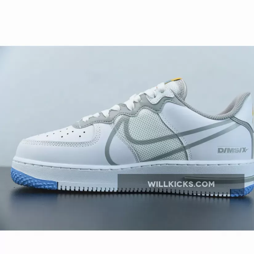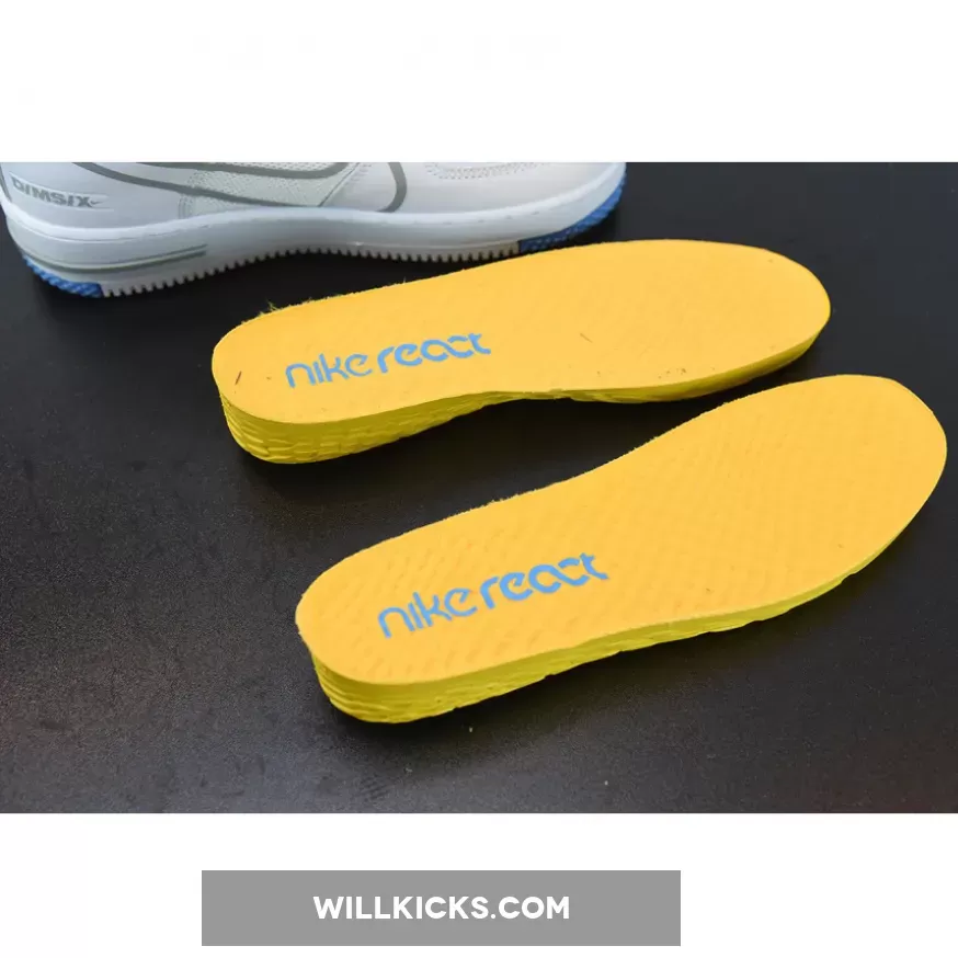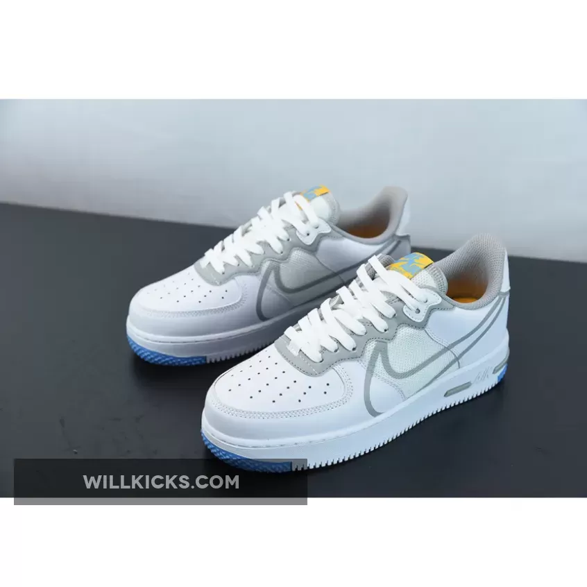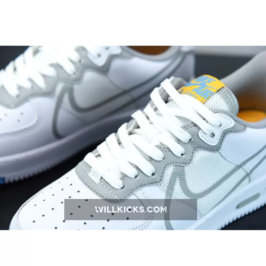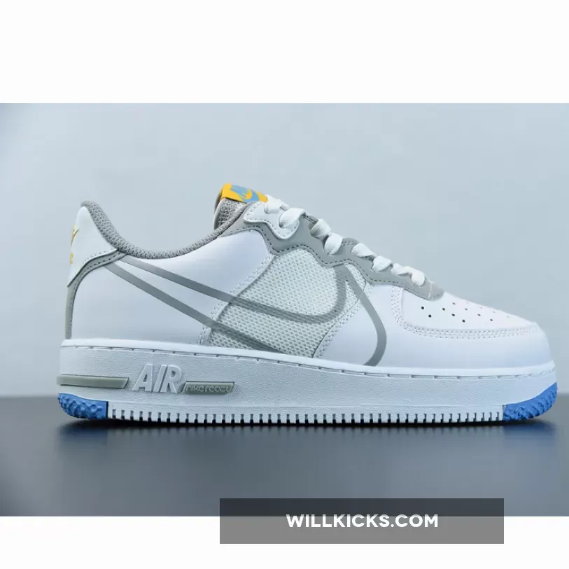 This offering comes dressed in a White, Light Smoke Grey, and University Gold color scheme. It features a leather upper with mesh on the sides panels and tongues. The new model swaps its traditional midsole for a full-length drop-in Nike React midsole with a heel Ramp Air unit. Nike React’s exaggerated style permeates onto the shoe’s exterior, which sees a fresh shape, wavy eyestay and bold Swoosh, while the familiar Nike React’s pattern replaces the traditional AF1 stars at the heel and toe of the outsole.