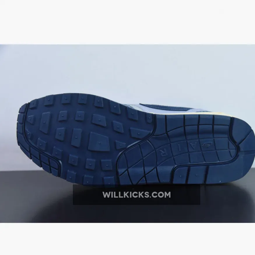 The Nike Air Max 1 ’86 Indigo Haze packs a serious punch. With its icy sole and gum sole detailing, this shoe is sure to show out wherever you go. The upper is made of a tonal blend of blue and indigo shades, with suede and mesh detailing that adds texture and dimension to the design. Mesh toe boxes and pleated collars add to its neutral presentation by arriving with white finishes.