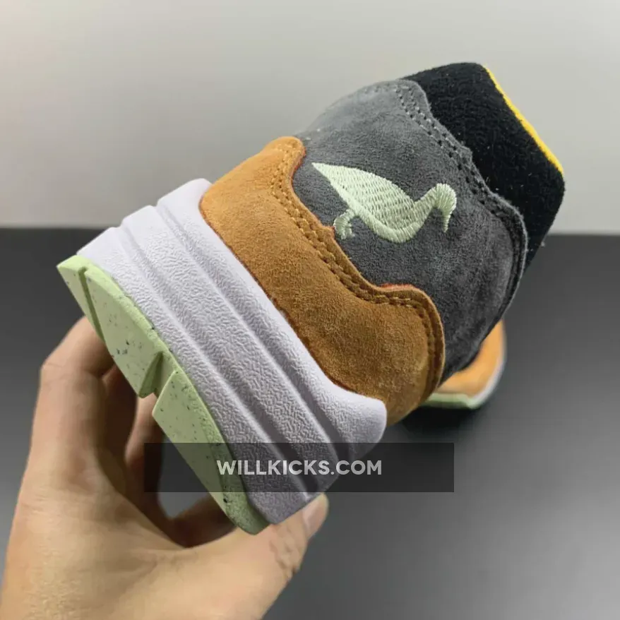 Crafted with premium suede materials, the sneakers boast a color combination that invokes the aforementioned collection’s “Ceramic” pair: “Kumquat” and “Honeydew” animate mudguards, profile swooshes, and other supporting accents, while “Black” and “Anthracite” cover the majority of the Air Max‘s center panels. The cushioning and traction solution underfoot maintains a relatively straightforward arrangement, with midsoles favoring a “White” look. Visible Airbags and waffle-patterned tread revert to “Honeydew” flair. Lastly, a duck figure is embroidered onto each shoes’ spine, rounding out the “Ugly Duckling” theme.