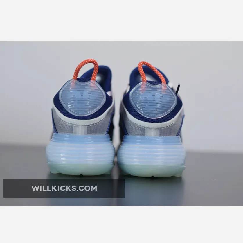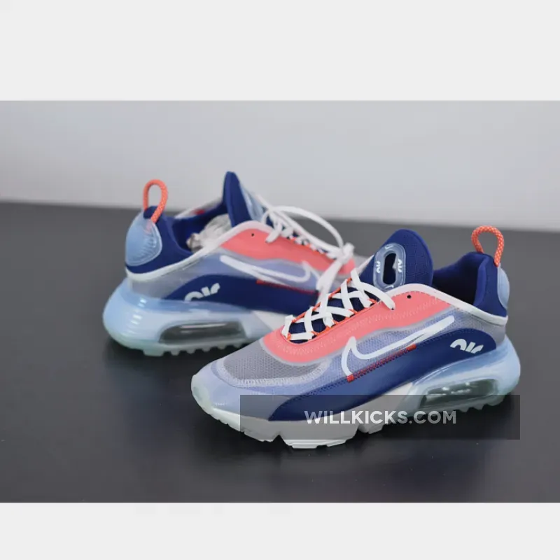 One of those includes the Nike Air Max 2090 that features a White transparent upper with a Blue textile leather mudguards and mesh on the tongues and heels. Finishing off the theme are Red contrasting accents paired with translucent heel pieces atop a White rubber sole.
