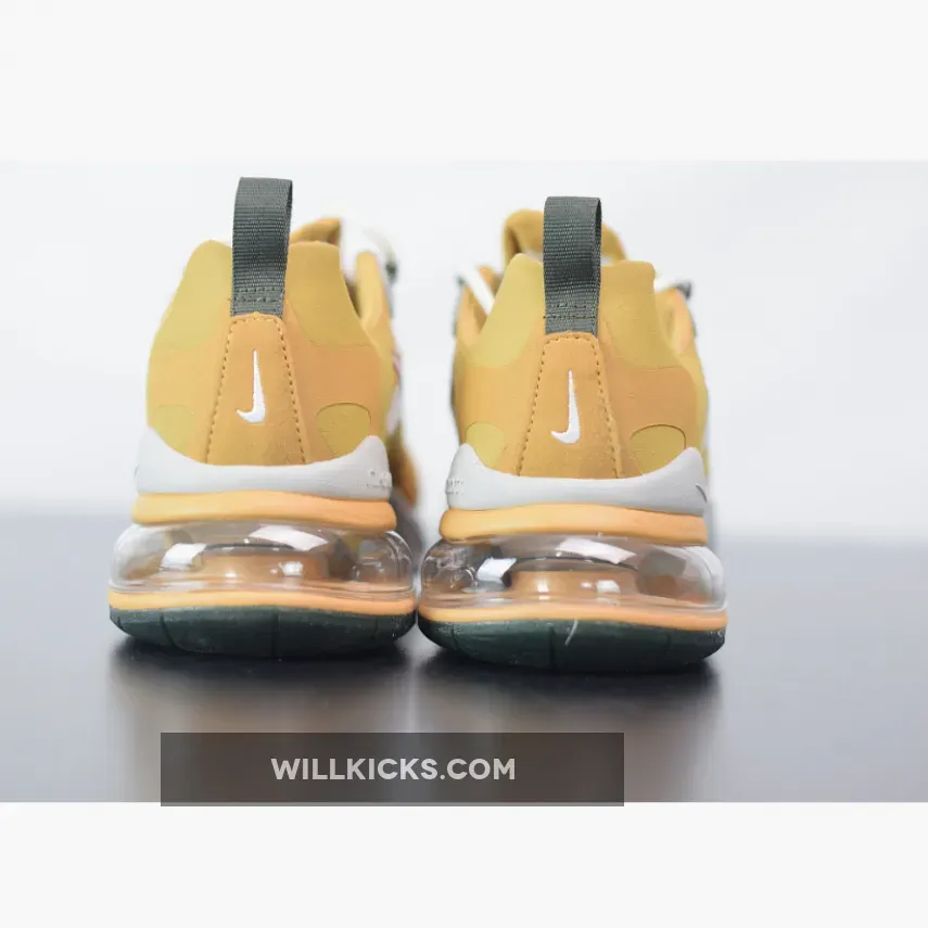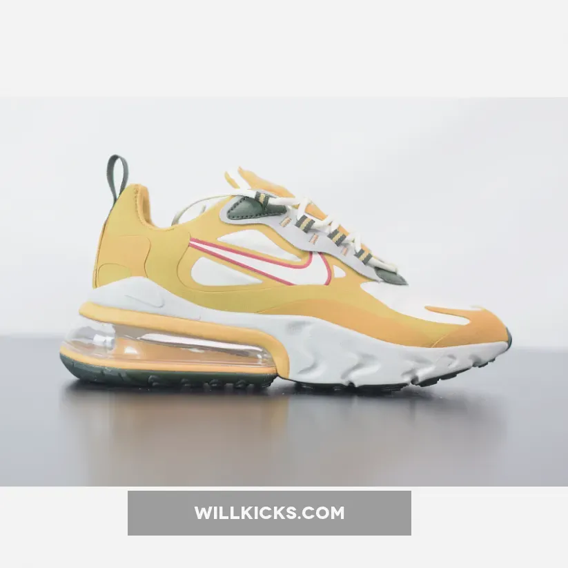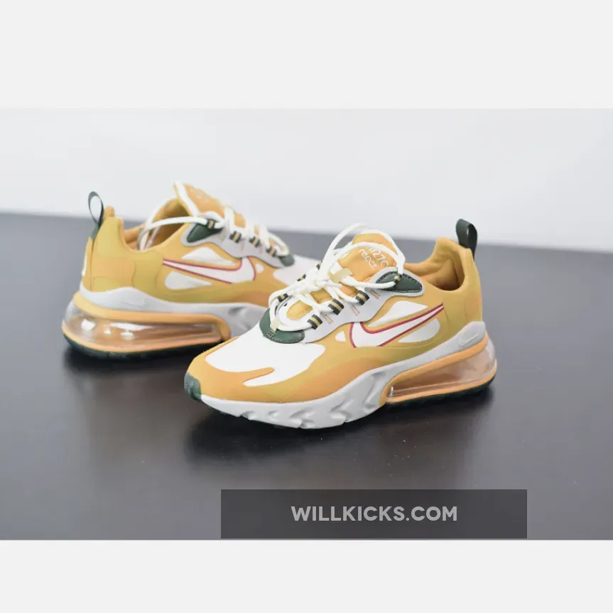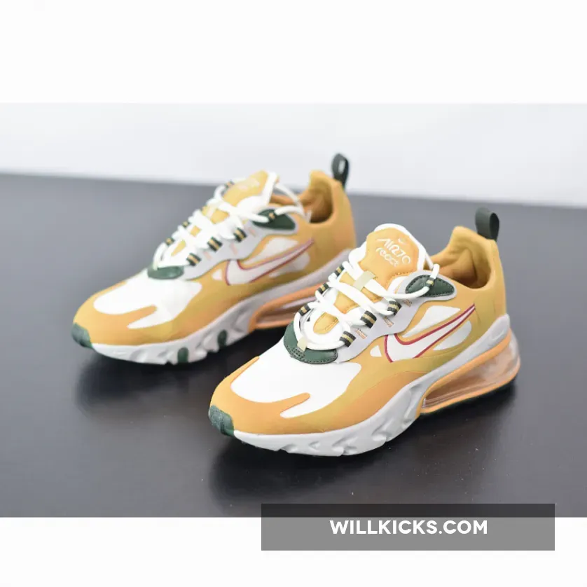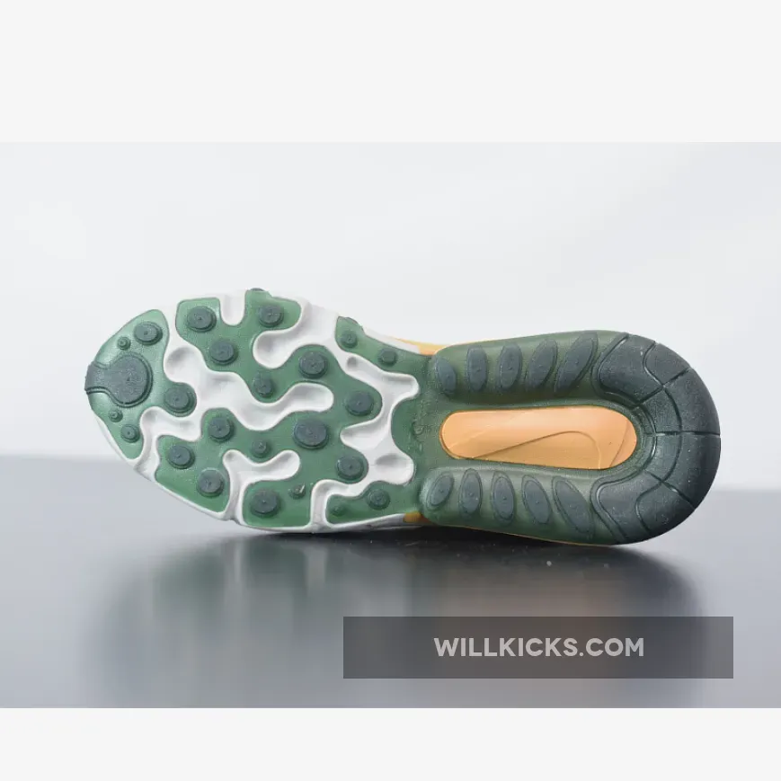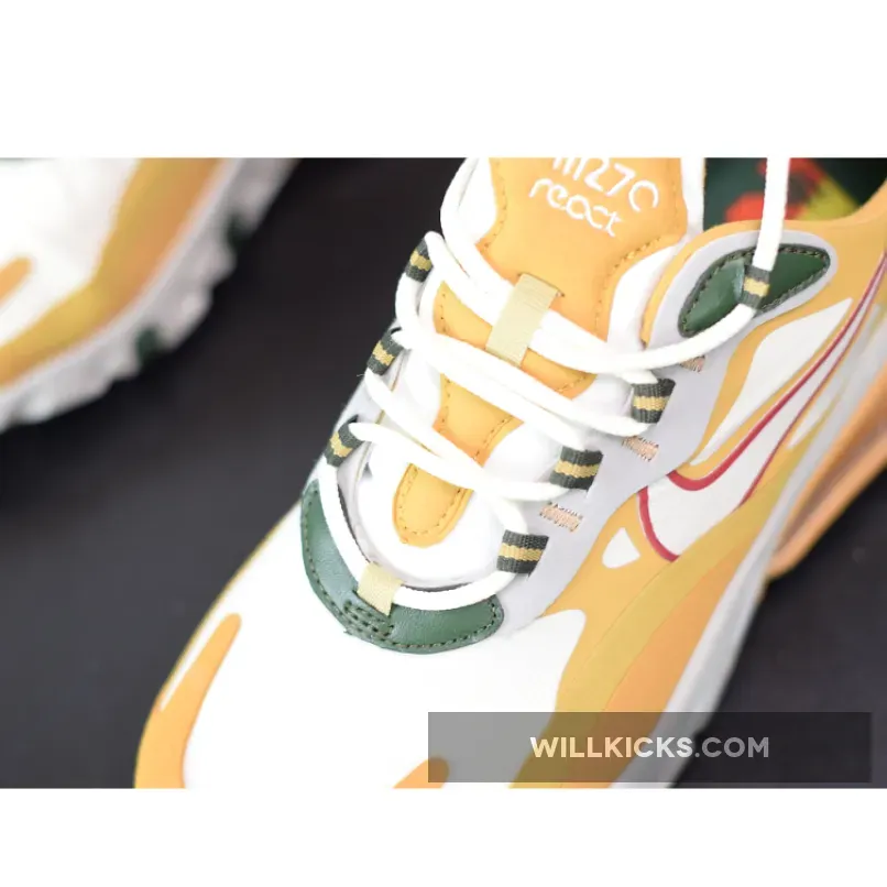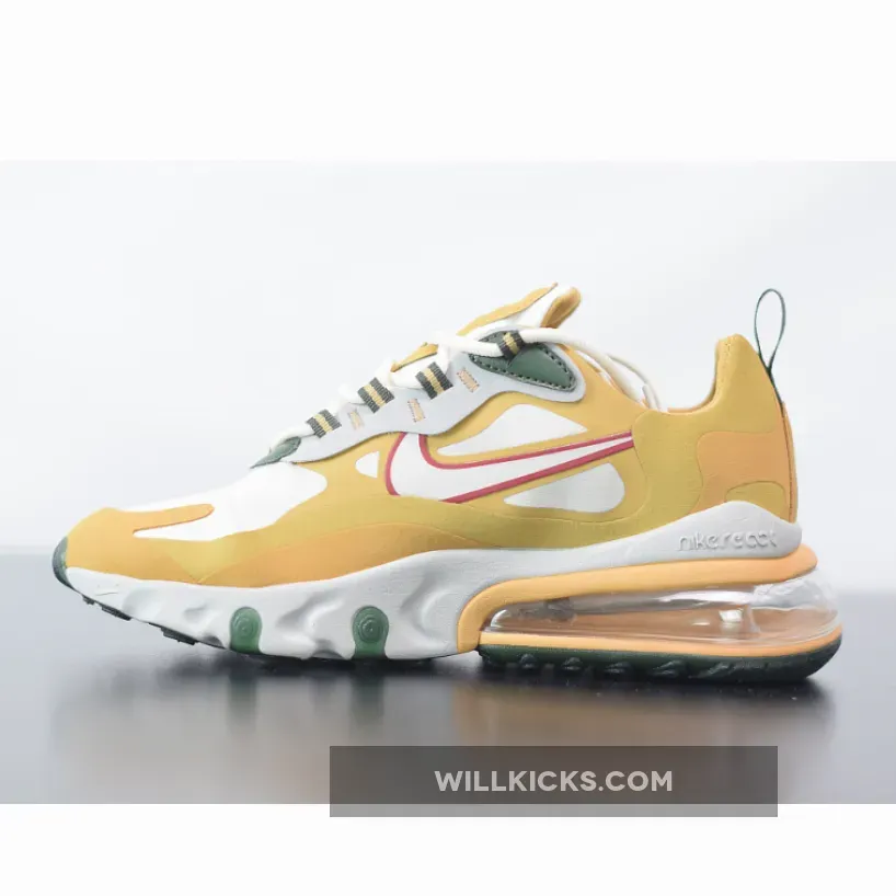 Painted in Gold, White, Red and Green colour combination is the brand new Air Max 270 React. This rendition of the sneaker is mirroring the transformation of leaves in the Fall time with the tones of Gold, Green and Red on the contemporary designs. The top of the sneaker features Synthetic material with suede overlays. Moreover, the sneaker includes Neoprene-mesh tongue with lace-up closure. Down below the sneaker, we have the foam midsole with airbag unit for lightweight support and comfort. Finishing off the design for this brand new Air Max 270 React is the Rubber outsole that provides traction and stability.