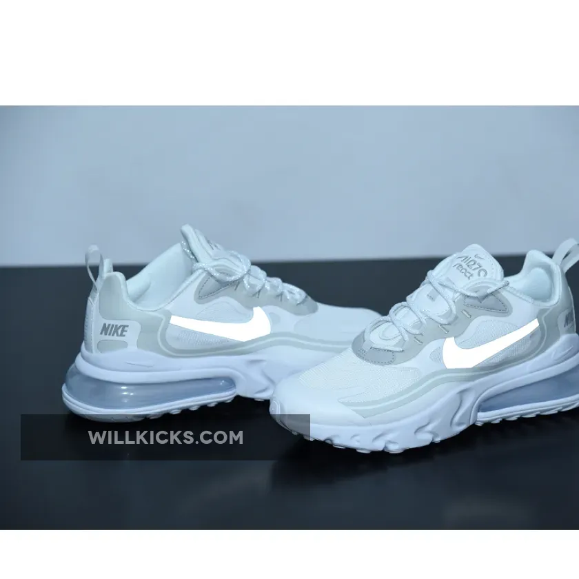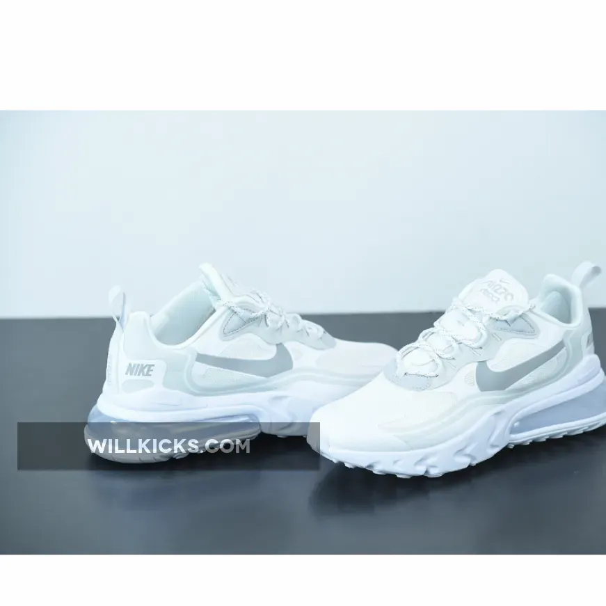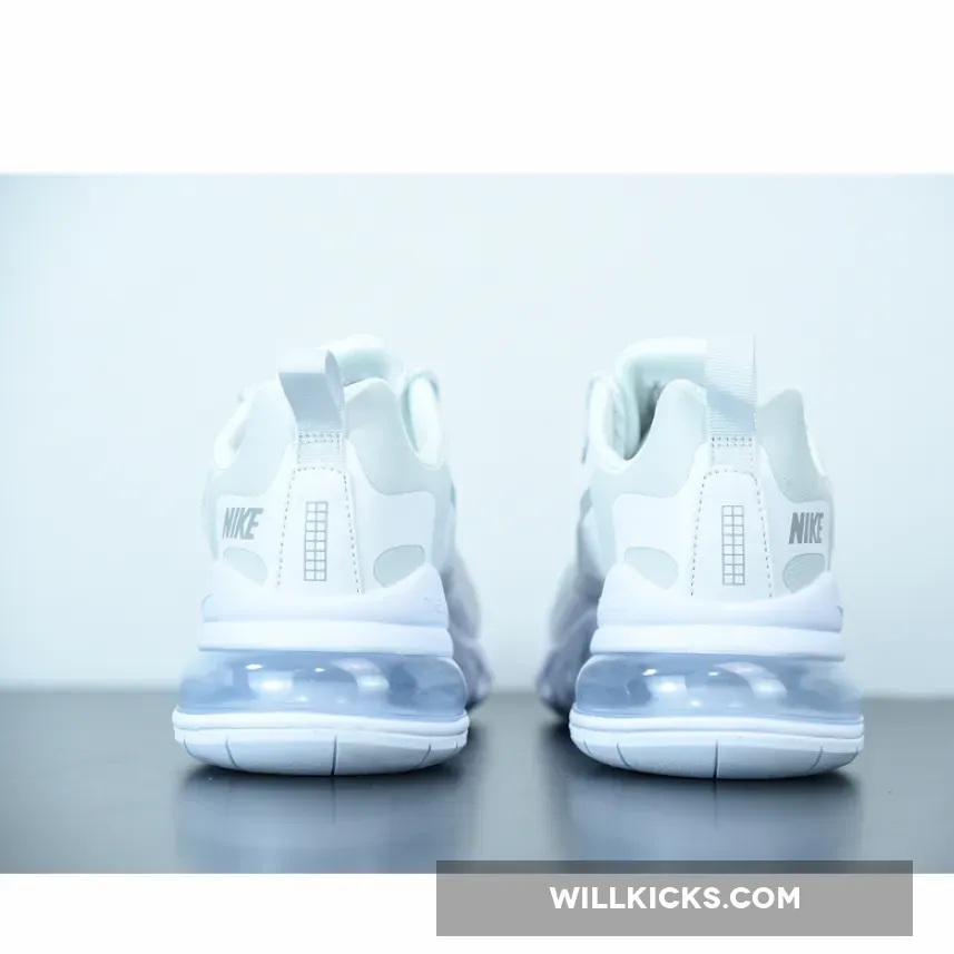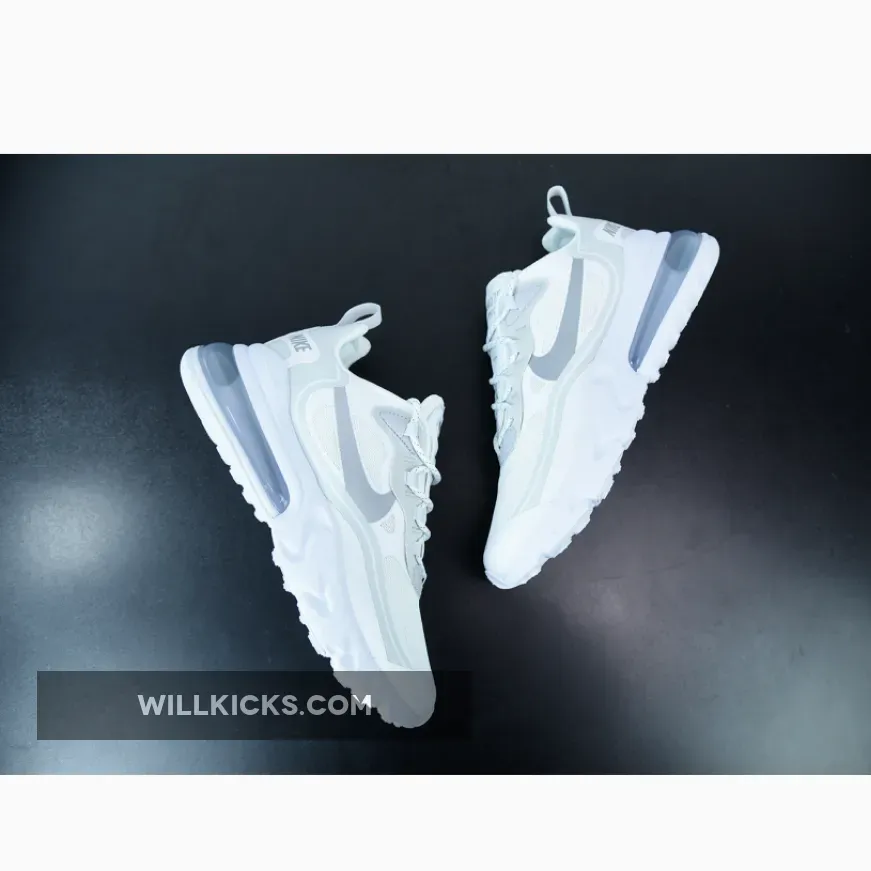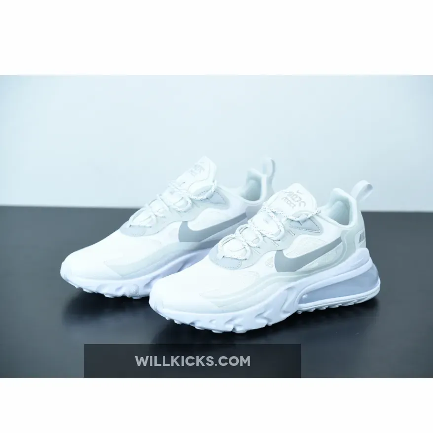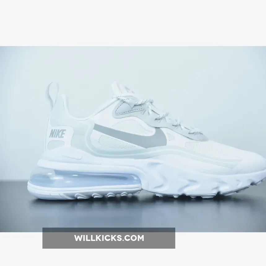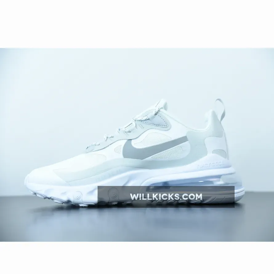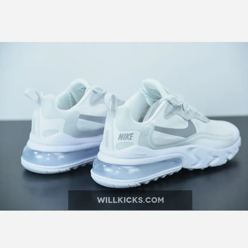 The Nike Air Max 270 React is a stylish and comfortable sneaker that is perfect for everyday wear. It features a white and light smoke grey colorway that is sure to turn heads. Whether you're running errands or hitting the gym, this sneaker is the perfect choice for any occasion