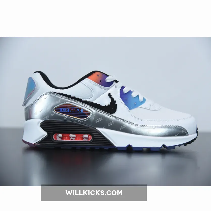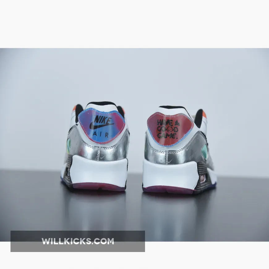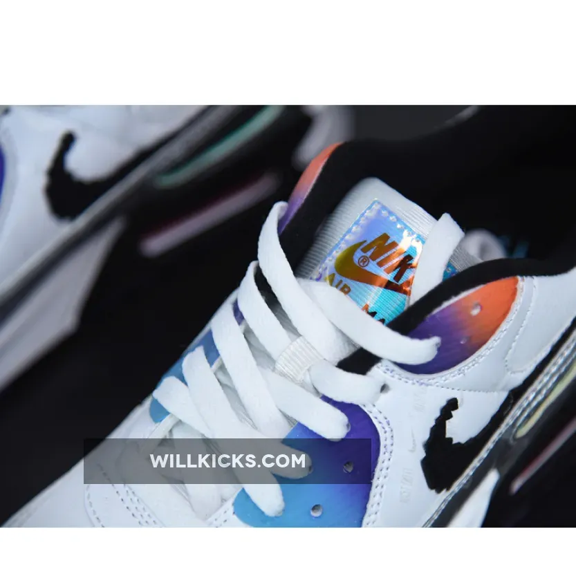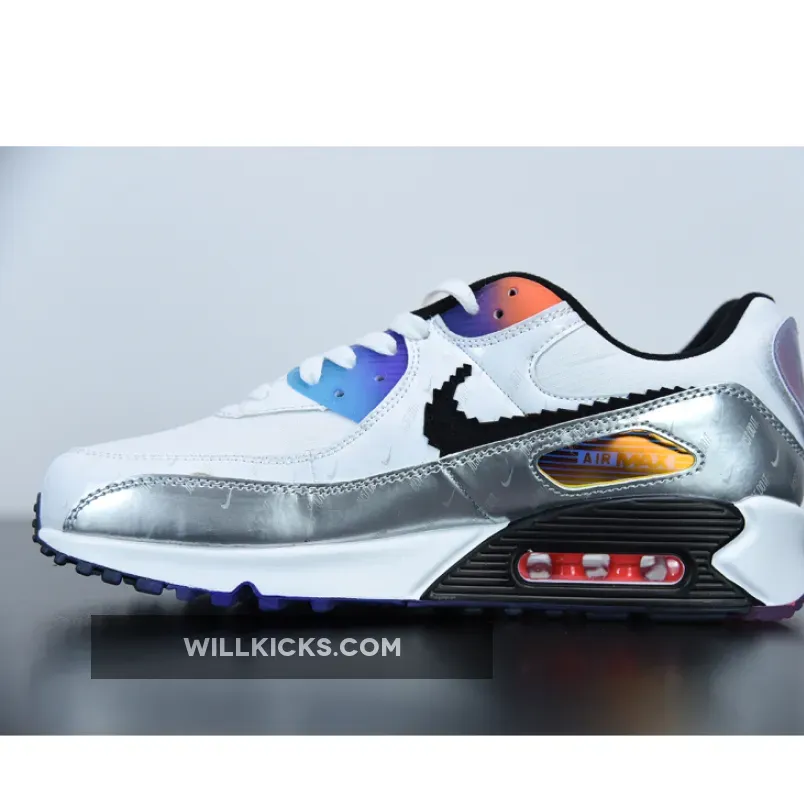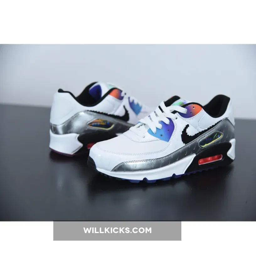 This time it’s the Air Max 90 “Have a Good Game” that tackles the running theme, with like white uppers, overlays finished with an all-over reflective print, pixelated Swooshes, colorful gradients, and shiny iridescent. Uppers arrive in crisp white ripstop, with overlays in white and chrome hosting the aforementioned prints. Striking blue, purple and red gradients grace the eyelets, outsoles, and rear overlays in a semi-translucent finish, whilst tongues and side brand panels boast a bold iridescent finish. The rear overlays allows for customization, with interchangeable Velcro patches included, and the pair is complete with jet black pixelated Checks, black Air cassettes, hot pink Air supports, and mismatched branded insoles.