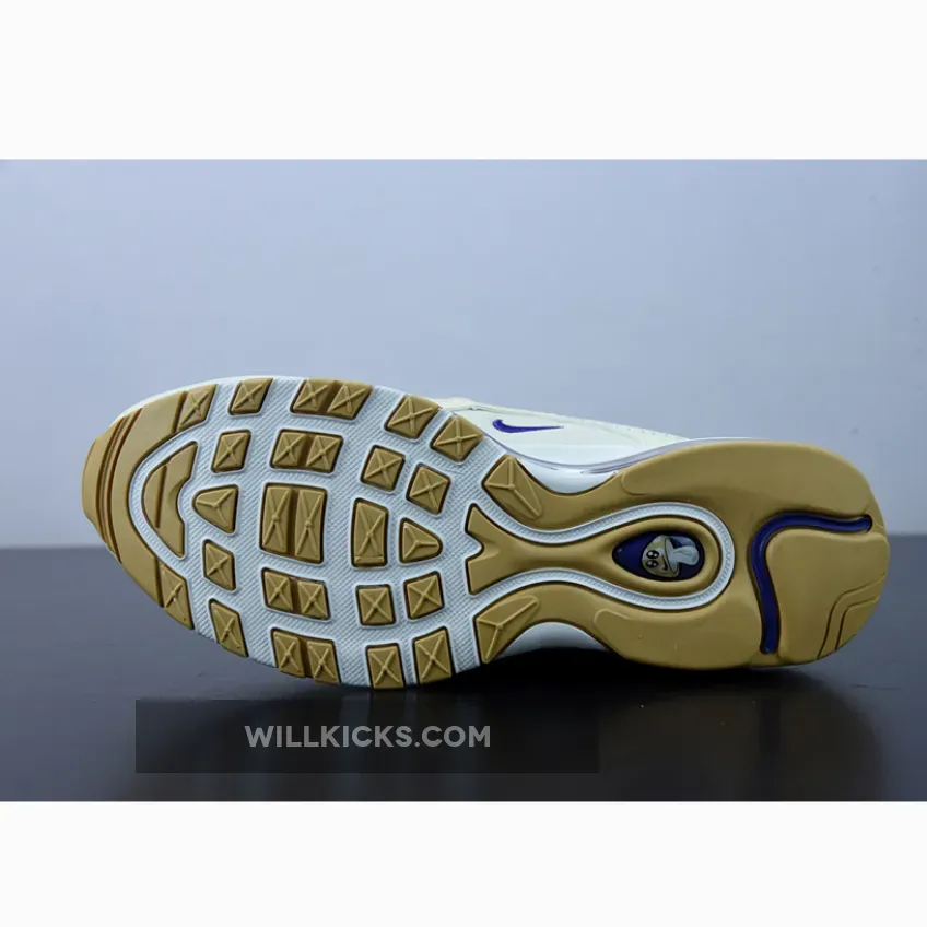 “?❤️ I’m really impressed with the Air Max 97’s unique design! The beige and purple combo is ? stunning & the recycled materials feel eco-friendly ?. Comfortable too! ? 4.5/5 stars!”
