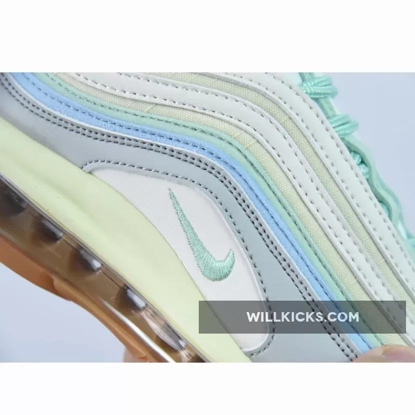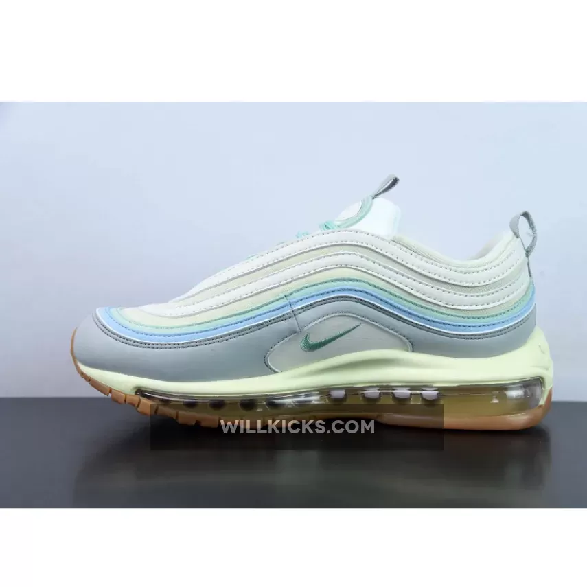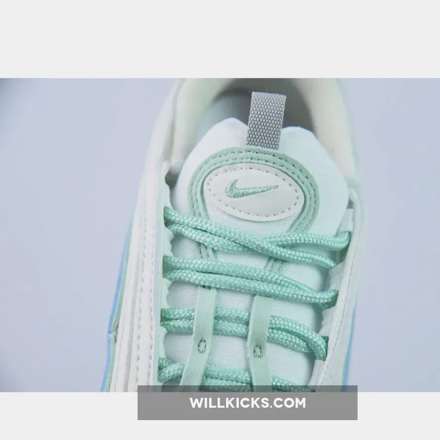 Featuring an official colorway of Coconut Milk and Enamel Green, this AM97 will arrives in a makeover that will be a huge hit this summer season. Staying true to the collection, the sneaker features a fresh new design that sports a mesh, leather, and suede design that calls for creamy white base detailing which is paired with shades of pastel blue, green, and grey being used on the overlay system, lacing system, and branding. “Certified Fresh” branding behind the tongue tags and insoles completes the design.
