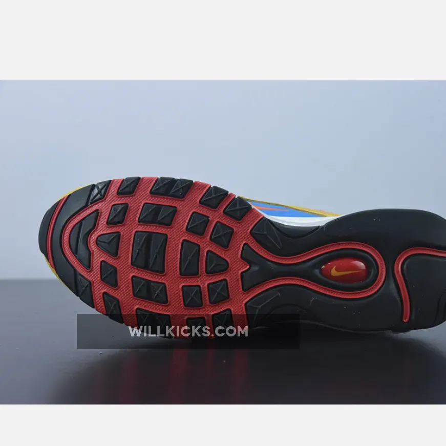 Nike takes it back to the good old days with the Nike Air Max Running Club collection. Joining the pack is the undeniably eye-catching Nike Air Max 97 SE Running Club Yellow Blue. It begins with a carrot-coloured suede base and dressed with the iconic ripple design which now takes on a bright blue and red combination. This same palette extends to the side panels where a red-orange Nike Swoosh sits in a patch of blue background. Amidst the very vibrant modern look are nostalgic details — the most prominent being the exposed foam tongue with the retro Nike Air branding.
