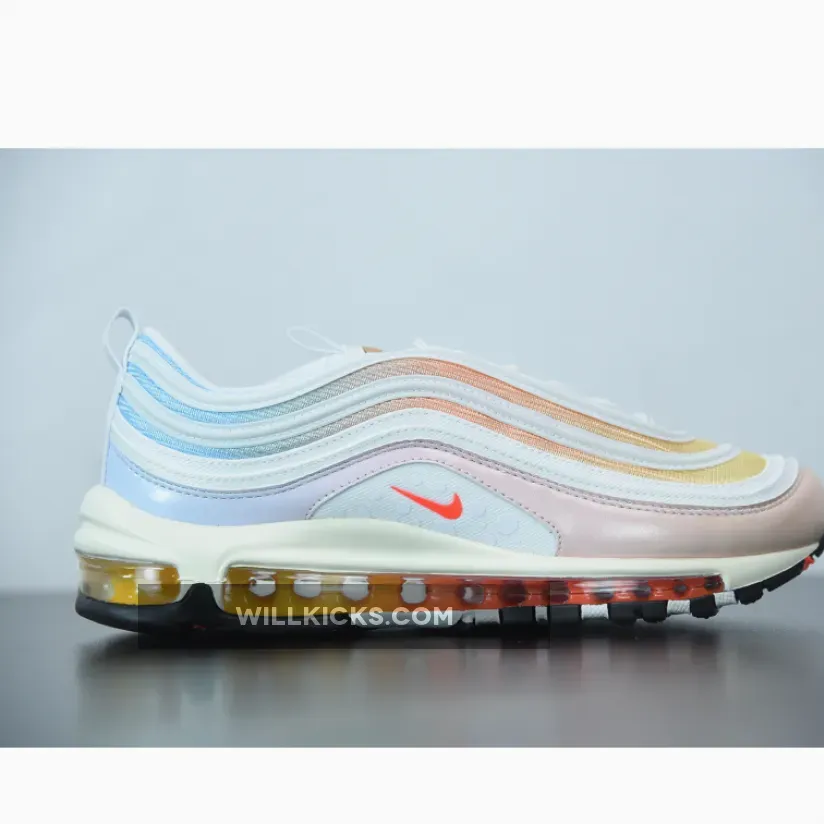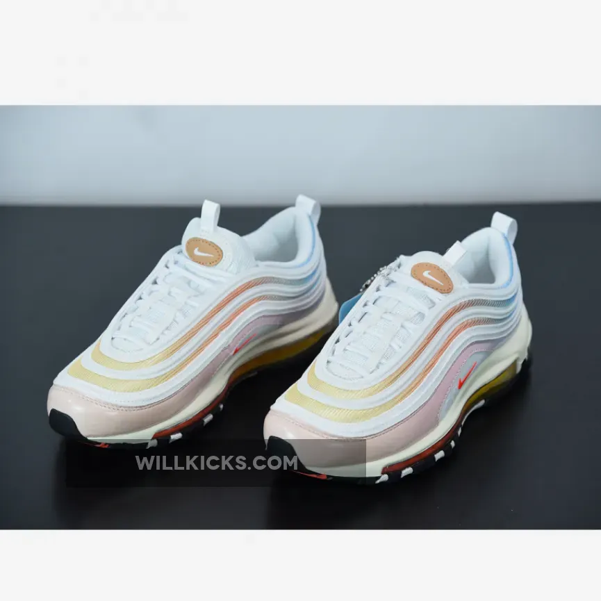 Loving the vibrant color combo & gradient design on these Nike Air Max 97s! ?? Quality seems solid, comfy & supportive. Can’t wait to rock these on my next adventure! ? #futureisintheair #nike #airmax97 #sneakerlove