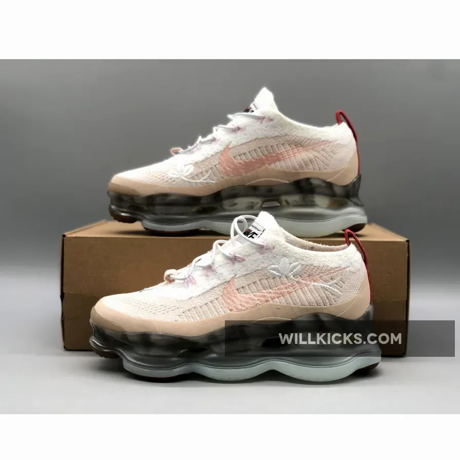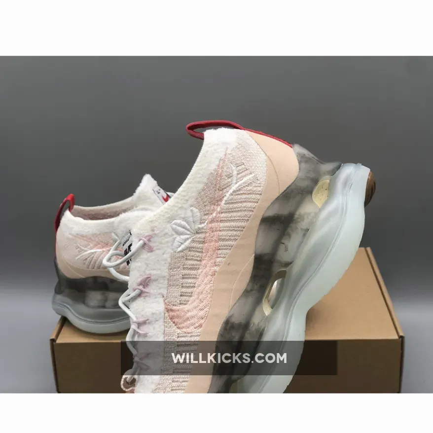 This women’s colorway of the Nike Air Max Scorpion is the latest addition to Nike’s “Leap High” collection that celebrates Chinese New Year.Done in a Sanddrift and Arctic Orange color scheme, details include a Sanddrift Flyknit upper decorated with embroidered Swooshes and florals on the sides.