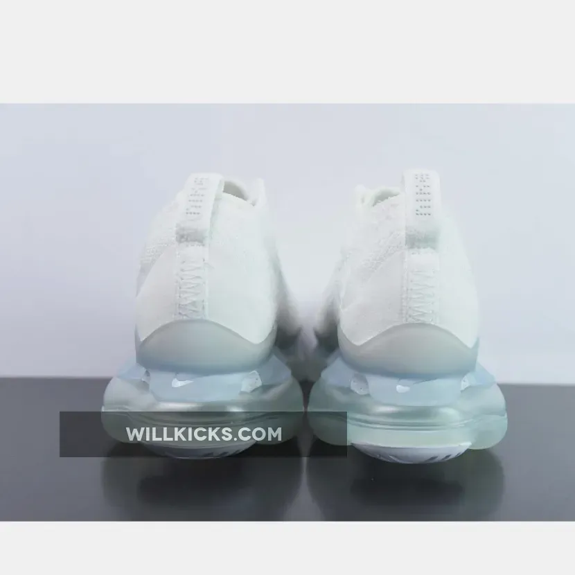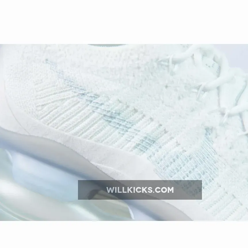 Arriving under the moniker “tomorrow’s comfort today,” the pairs are dressed in crisp white flyknit uppers with pre-distressed finishes around the collars which exhibit a snow-like effect.