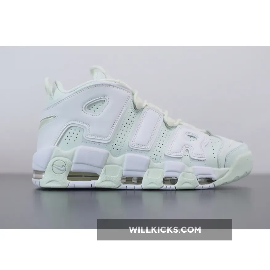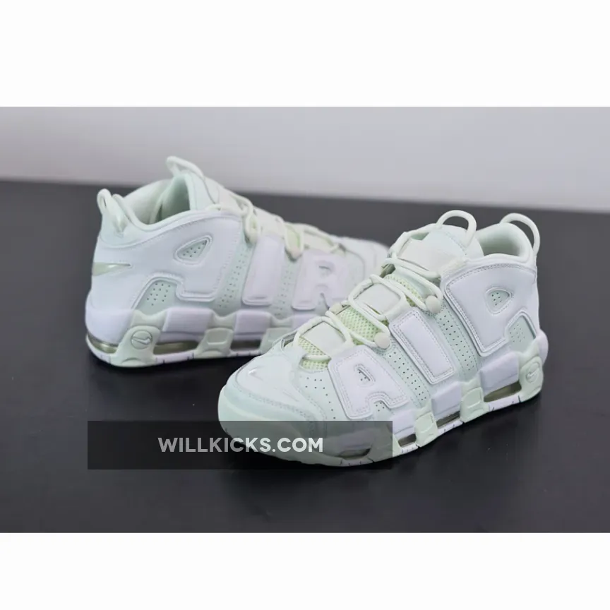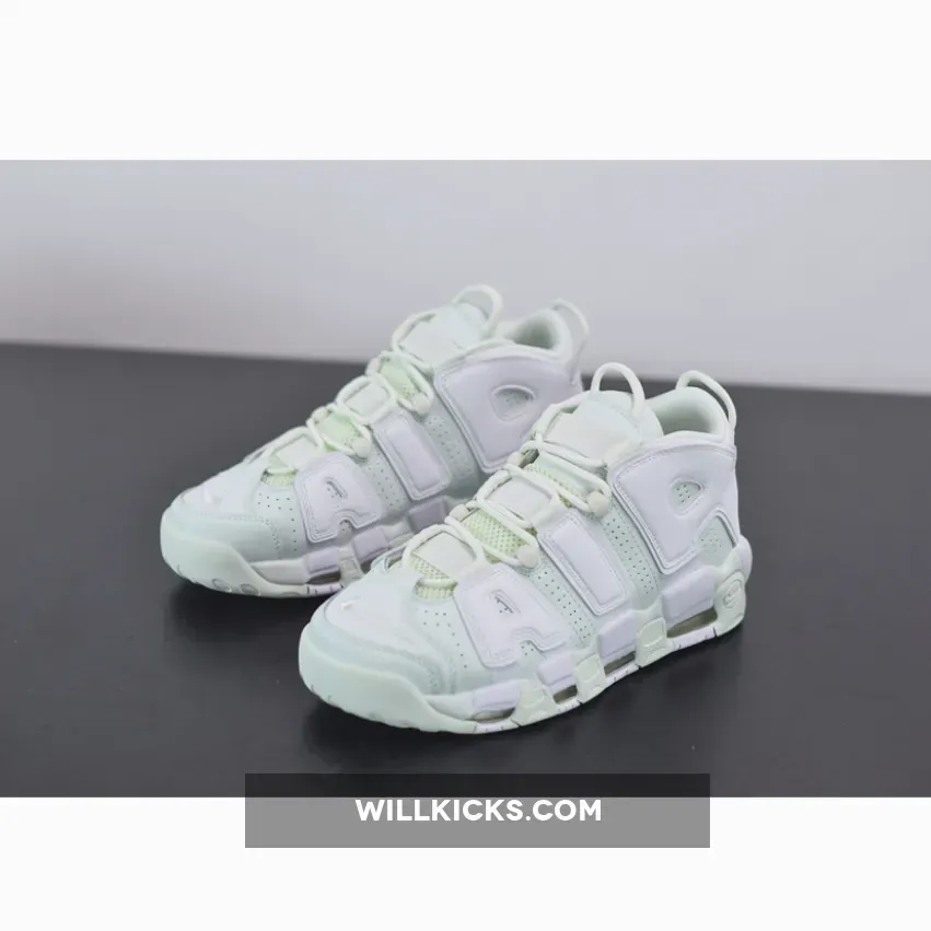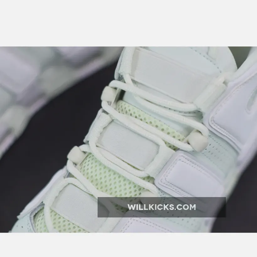 Dressed in a Barely Green and White color scheme. This women’s-specific colorway of the Nike Air More Uptempo features a Light Green upper contrasting with White on the oversized “AIR” lettering.