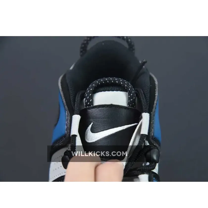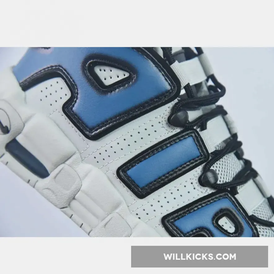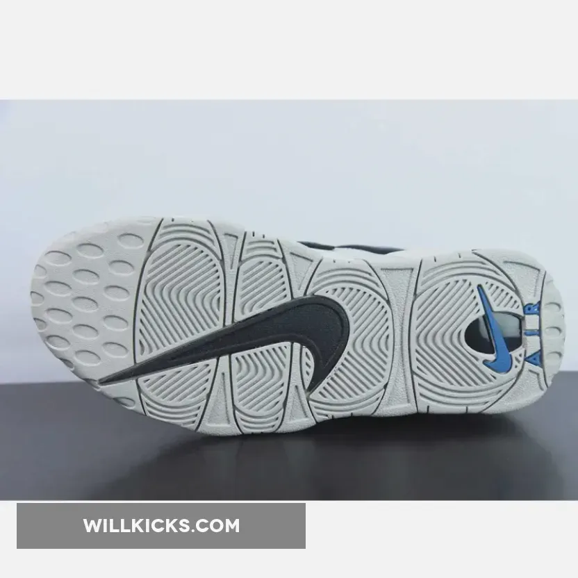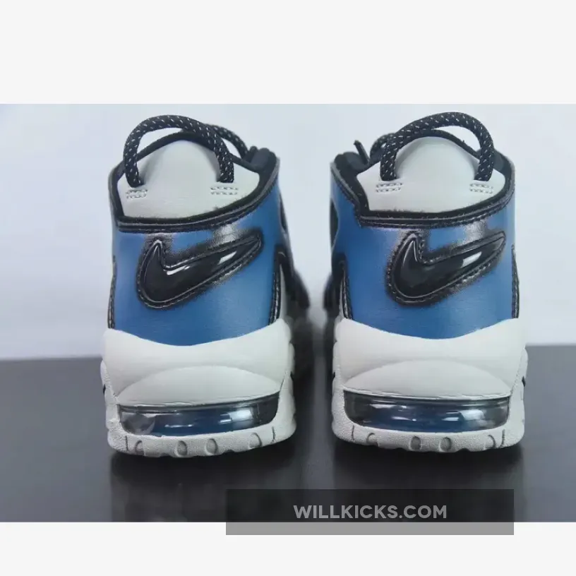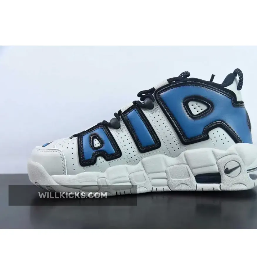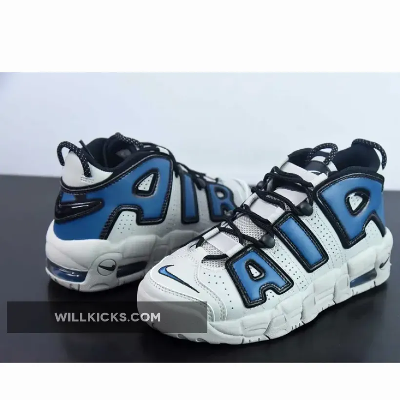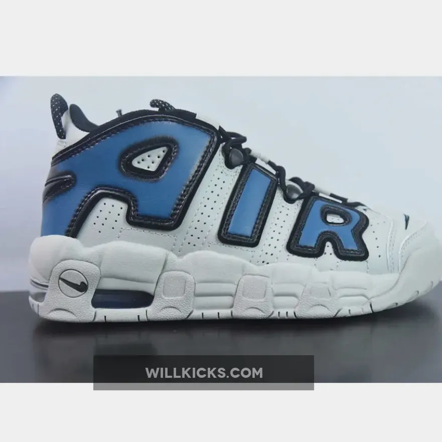 Solid color combo. Premium materials, comfy & stylish. Perfect for hoops or casual wear. #NikeAirMoreUptempo #IndustrialBlue #LightIronOre