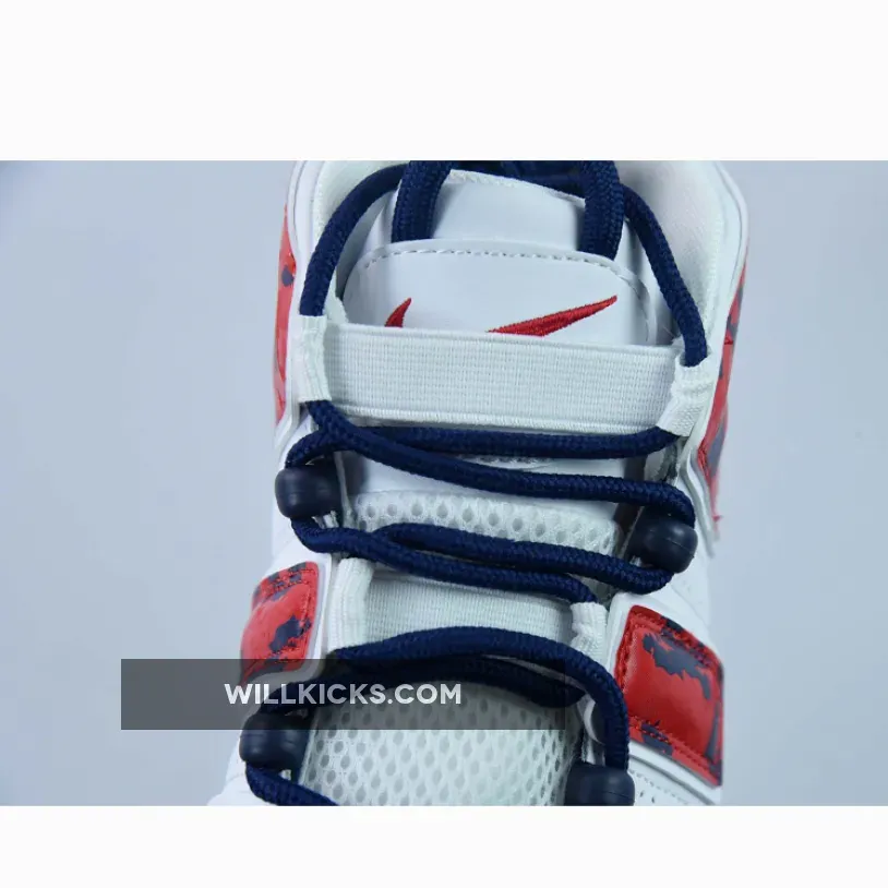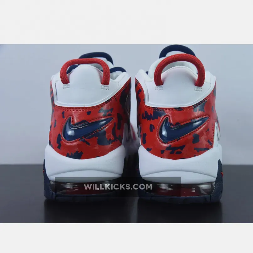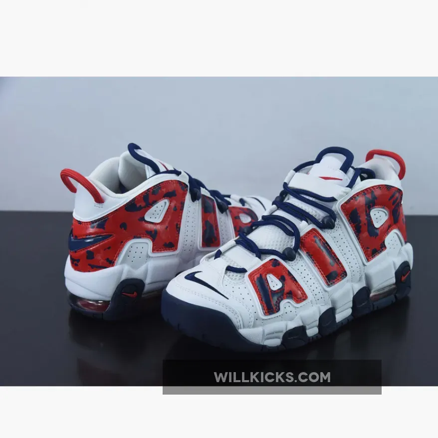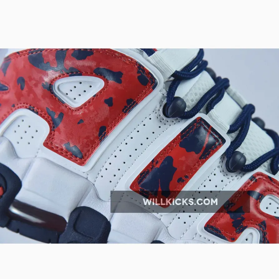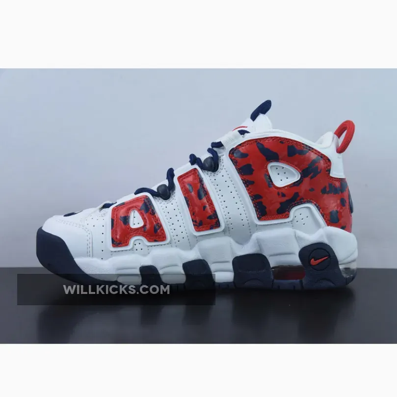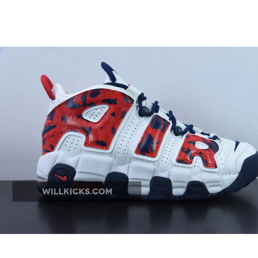 Clad in white, bases on this Air More Uptempo – which is set to arrive in both Grade School and Pre-School sizing – set the stage for navy and scarlet accents.e. forefoot Swoosh, laces and some of their loops, tongue pull-tabs), the latter makes a louder statement as it prominently appears on the model’s iconic Pop Art-style side-branding. Navy interrupts the red arrangement in a camo-like composition, while also taking over tread underfoot.