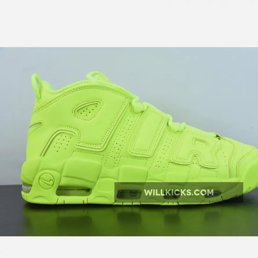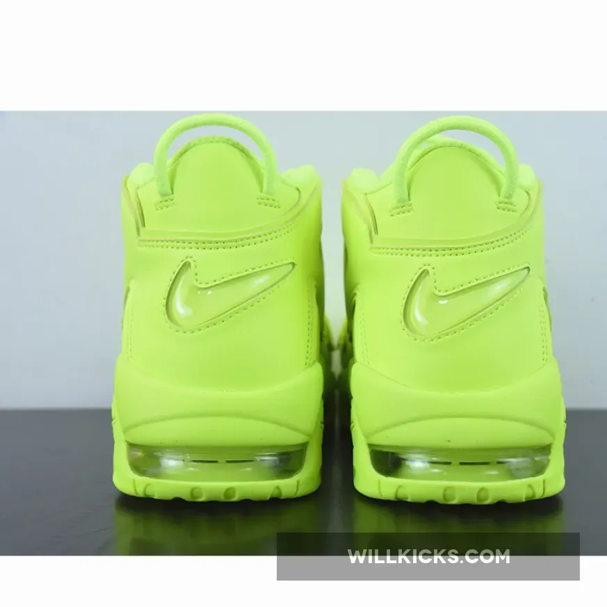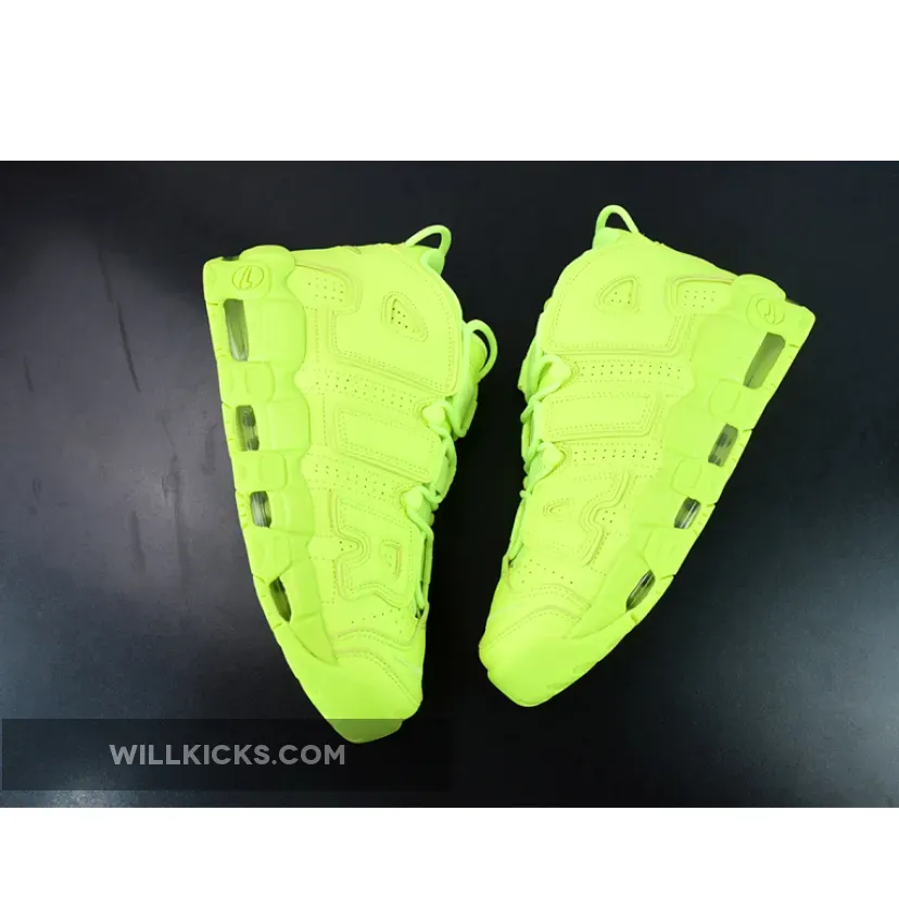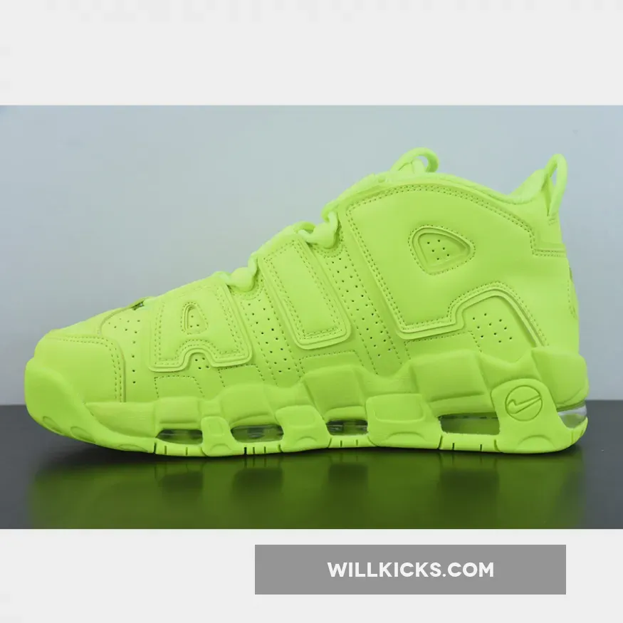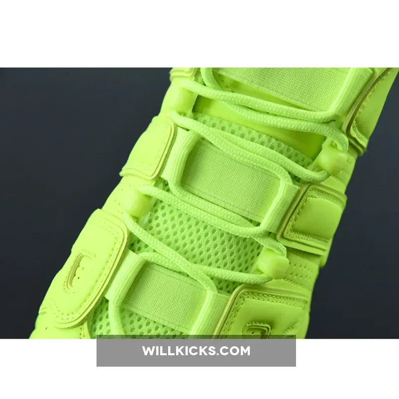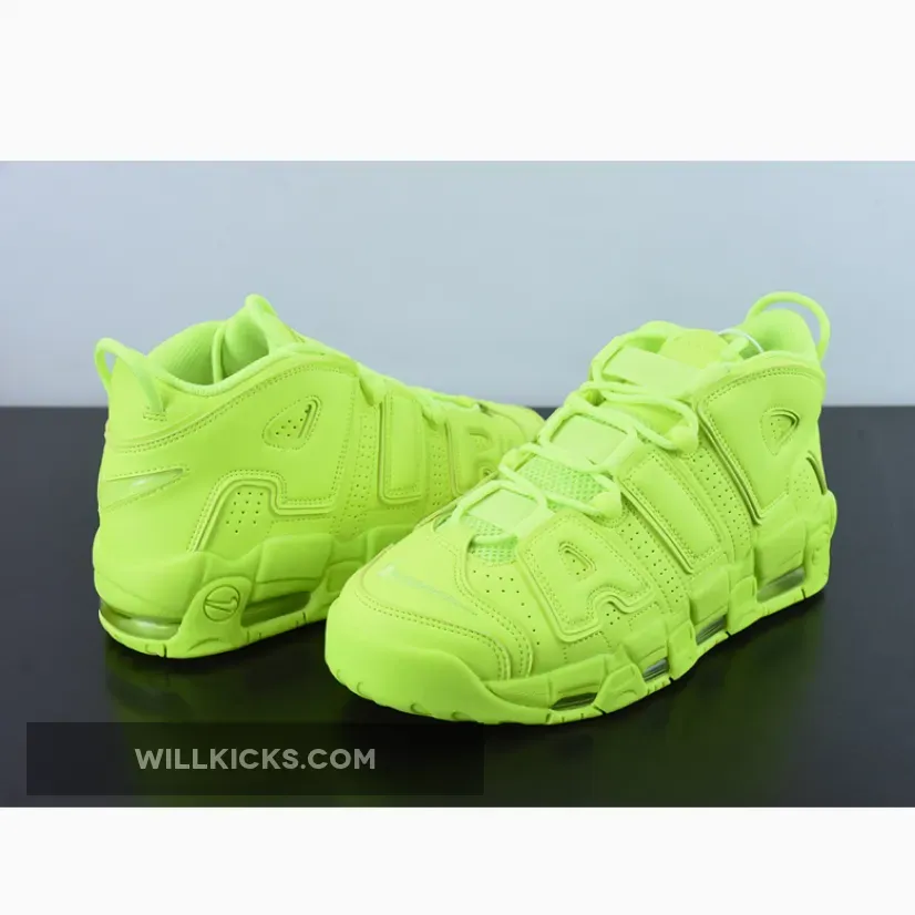 Let’s get loud with the Nike Air More Uptempo Volt! This unapologetically bold and bright piece will never fail to catch the attention of anyone who encounters it. The shoe features an ultra-bright fluorescent neon green upper, from the leather toe and plush tongue to the perforated side panels and oversized AIR branding. The only exception is the comfy exposed bubble cushioning that’s placed above the outsole. With this pair, you can easily make a statement without saying a word.