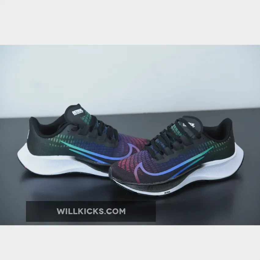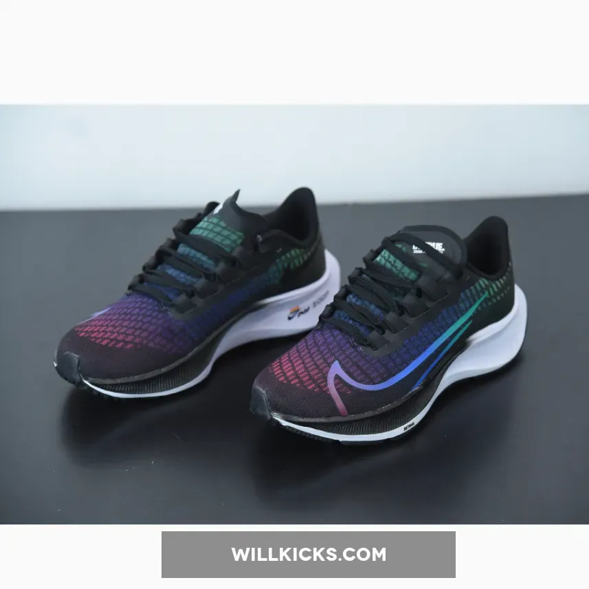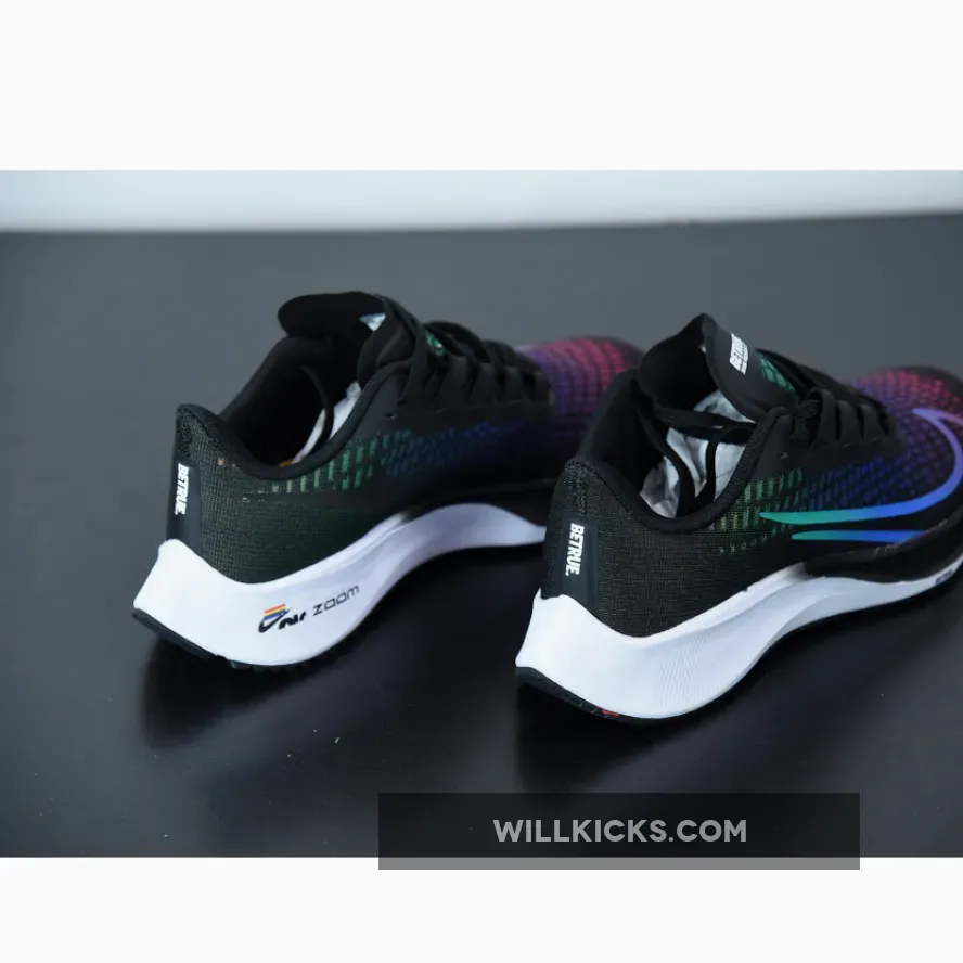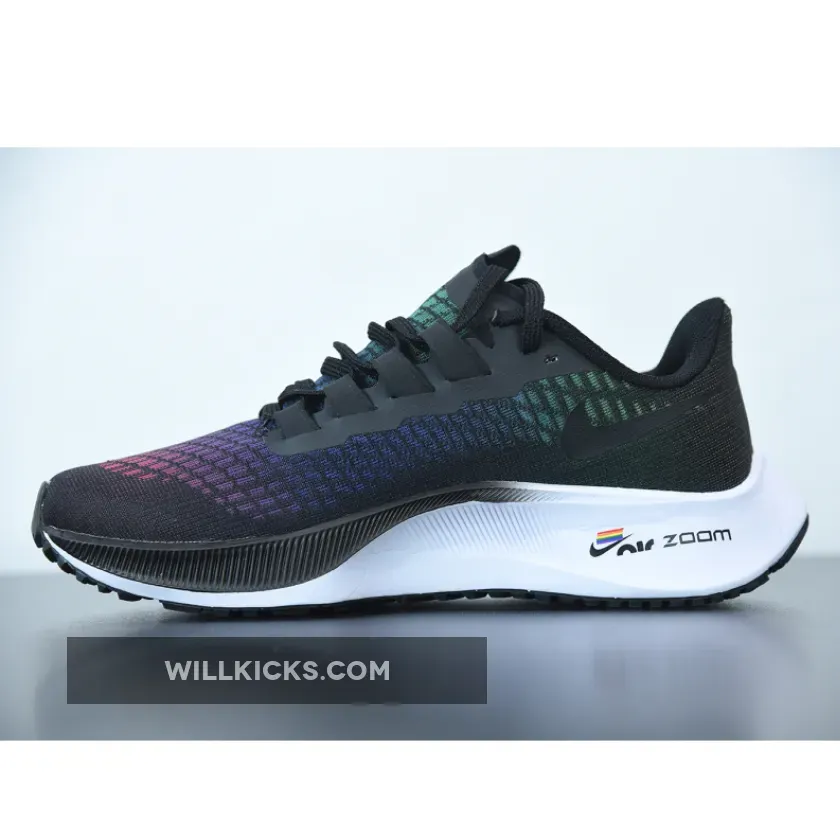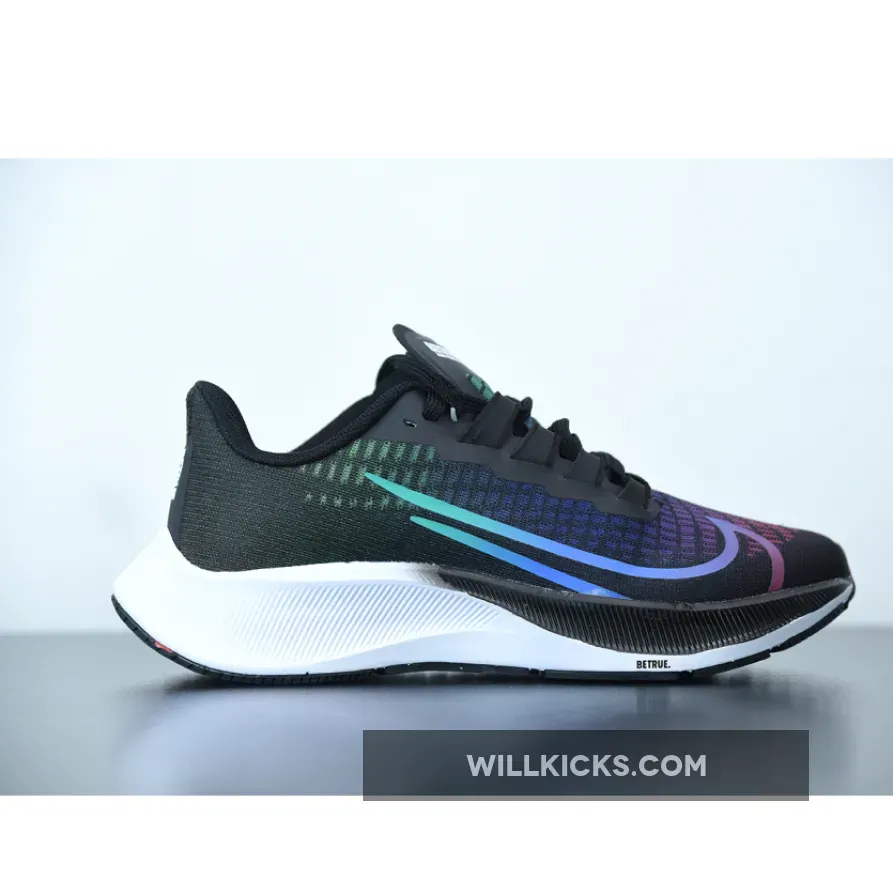 Designed to allow its wearers to both commemorate Pride and pay tribute to the LGBTQIA+ community, the Air Zoom Pegasus 37 “BETRUE” features an embellished gradient rainbow element and a matching Swoosh logo.
