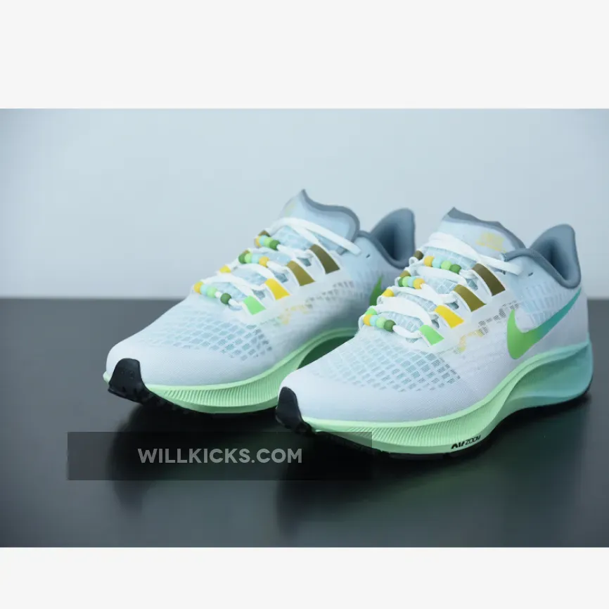 “I’m thoroughly impressed with my Pegasus 37’s! The buttery white and vapor green colorway is stunning. Comfortable cushioning and breathable mesh make them perfect for everyday wear. Durable outsole grips various surfaces. 10/10 would recommend!”