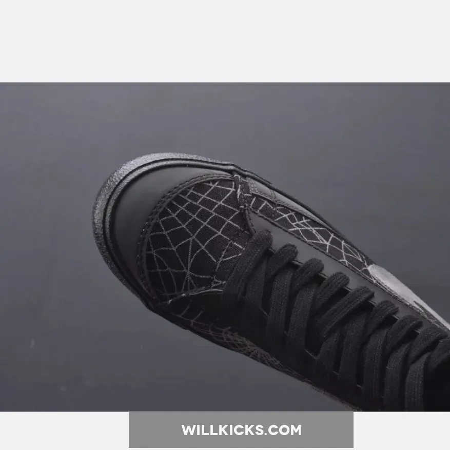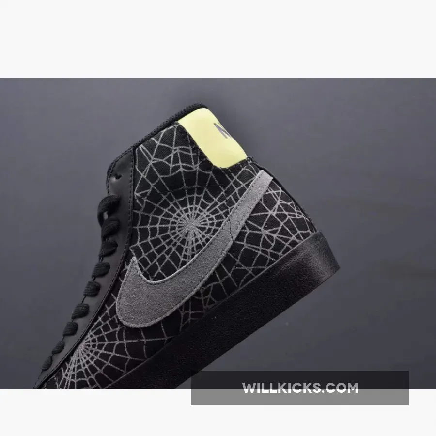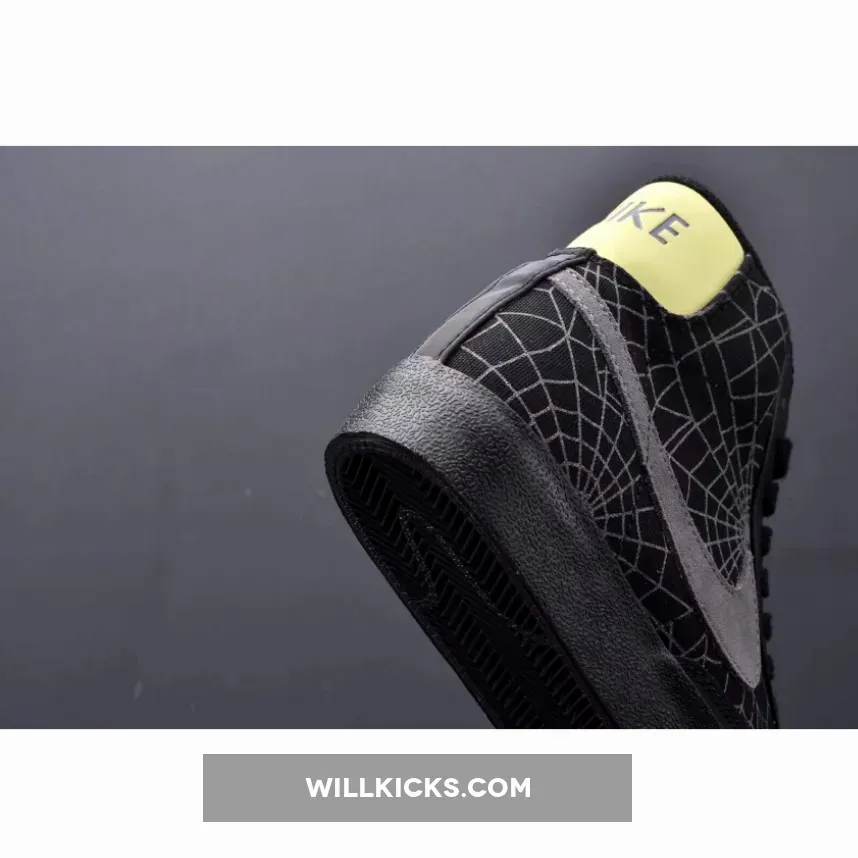 The pitch-black upper may look simple at first glance, but of course, it comes with a terrifying twist to fit the theme. A cobweb wraps around the entire upper, giving you the spookiest look ever. It’s time to up your costume game with these super stunning kicks. Black laces tie up the tongue tabs of these high top sneaks, keeping the aesthetic dark. Also, the green accents complement the black, making the shoe all the more intriguing.