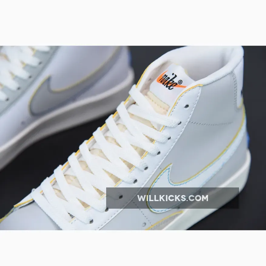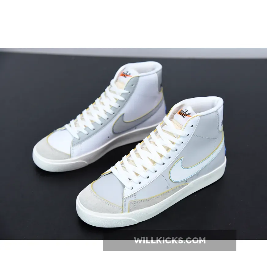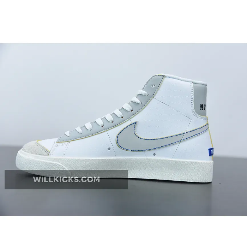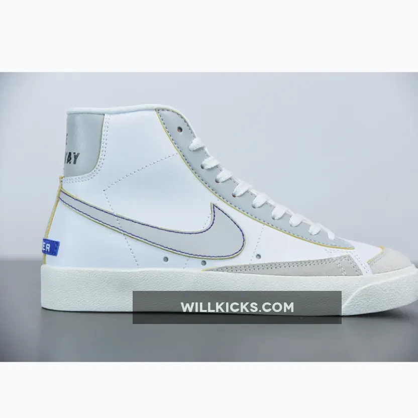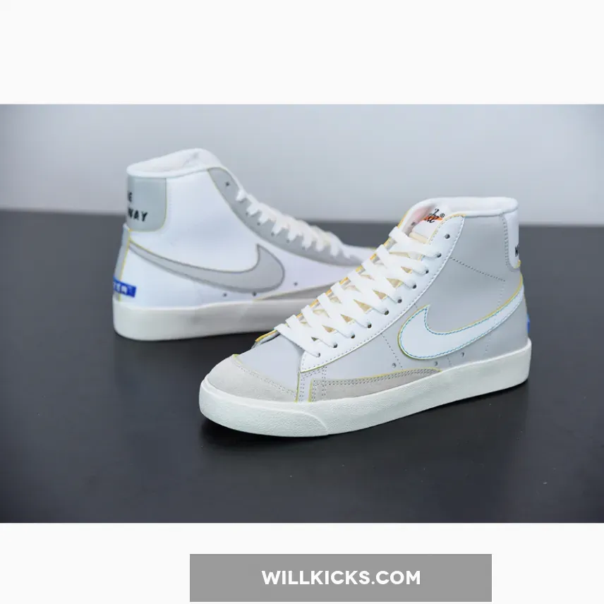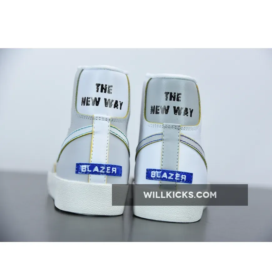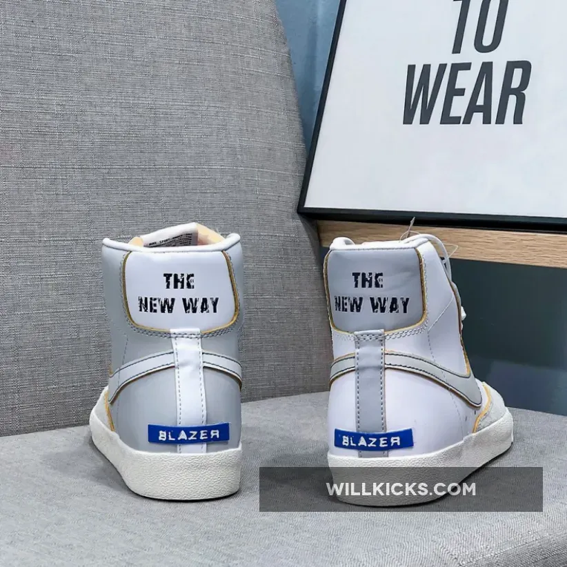 you’ll find a bright blue underlay that matches with its bordering exposed stitchings. In term of the lateral/medial sides, they split between a light grey exterior on the former and angelic outers on the latter. Moreover, the heels trade out the normal “Nike” text for “The New Way”, and the lower rear spells out the shoe’s moniker in paint-like font.
