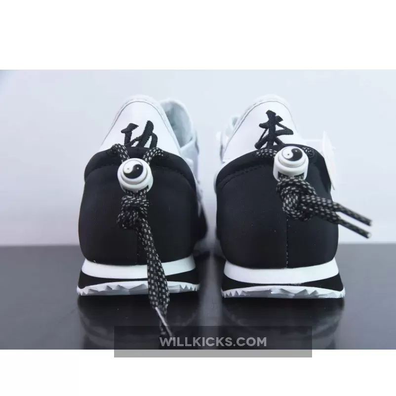 The CLOT x Nike Cortez ‘CLOTEZ’ delivers Edison Chen’s reimagined take on the classic silhouette, featuring a black-and-white yin-yang theme and a unique 3-in-1 build inspired by a traditional kung-fu shoe. The base sneaker, based on the Cortez, utilizes a white leather upper with a contrasting black Swoosh and mismatched CLOT and Nike tongue tags. Chinese characters — ‘功’ and ‘夫’ (Kung Fu) — are inscribed on each back tab. The accompanying slip-on features a sleek matte black finish with drawstring fastening at the heel.