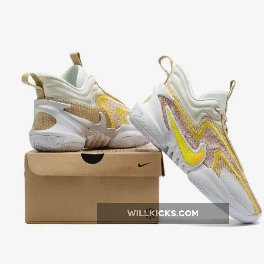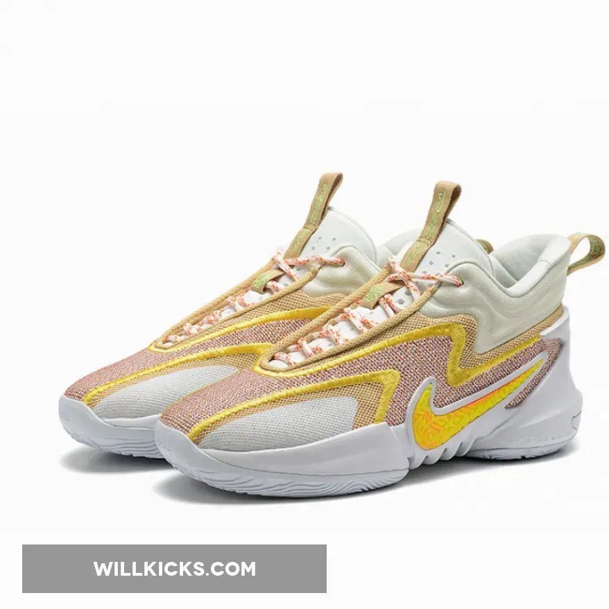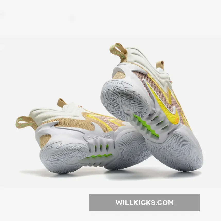 The Nike Cosmic Unity 2 Off White Yellow won’t fail to impress you with its unique yet wearable style. A multicoloured fabric base featuring zesty hues serves as the starting point for this perky design. On top, yellow zigzag embroidery, gold mesh details and a speckled grey patch at the toe work together to provide added style and durability. The Swoosh with a fun swirly pattern is also dressed in yellow. Meanwhile, the recognisable Nike Cosmic Unity 2 asymmetrical collar features an off-white hue.