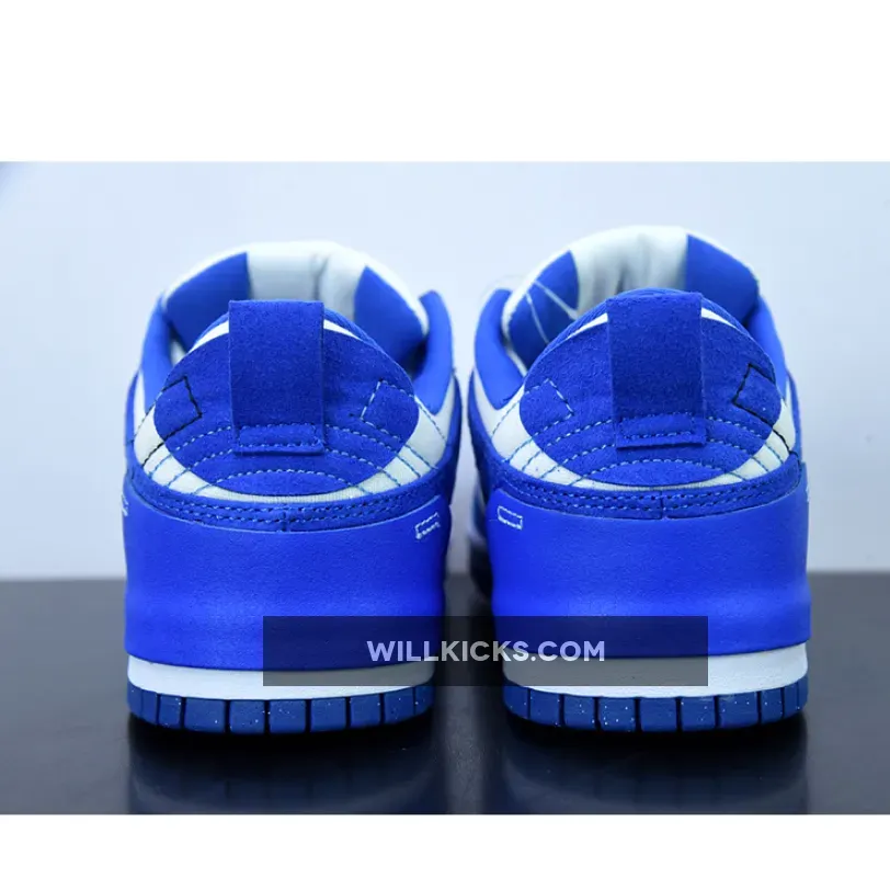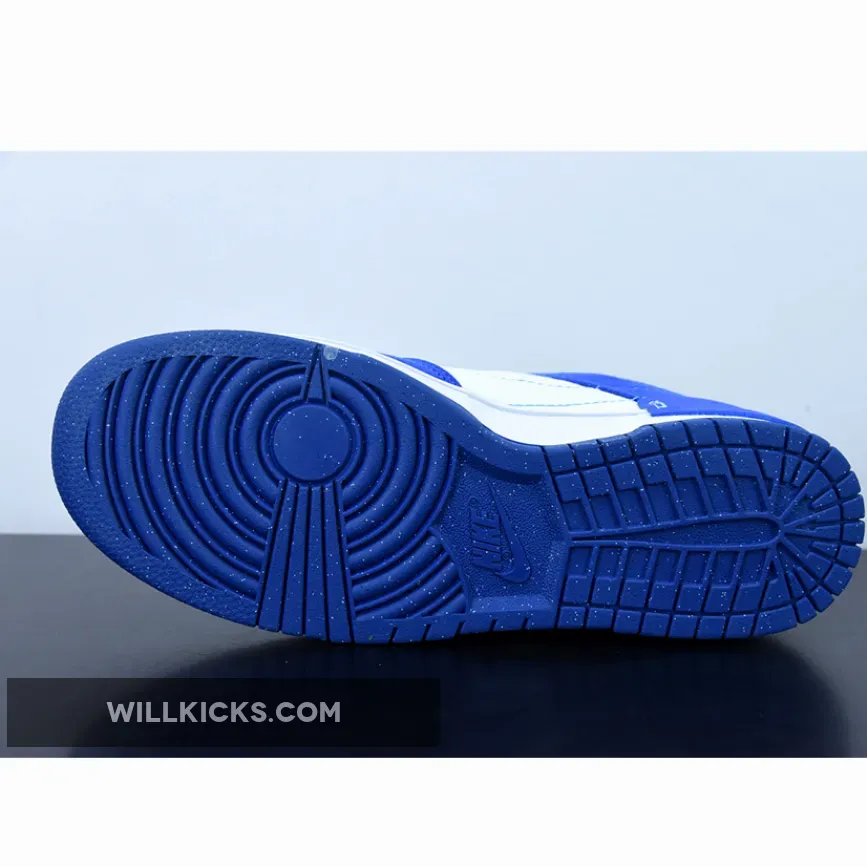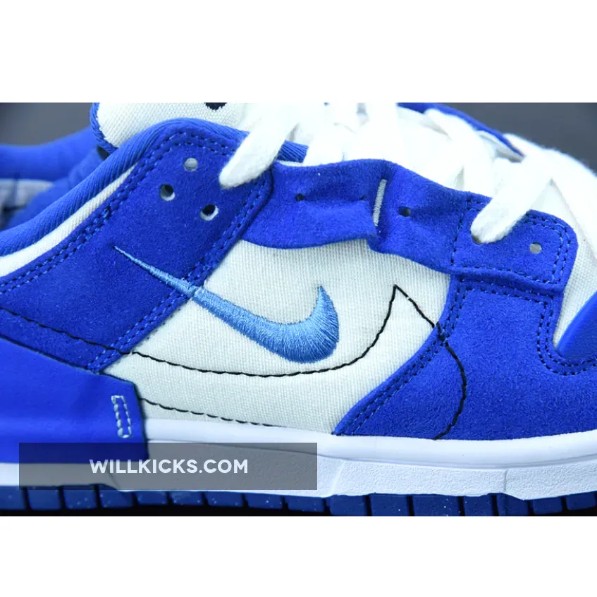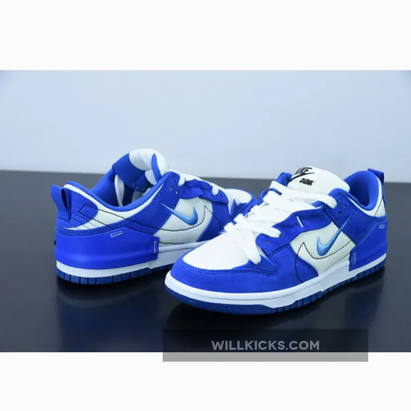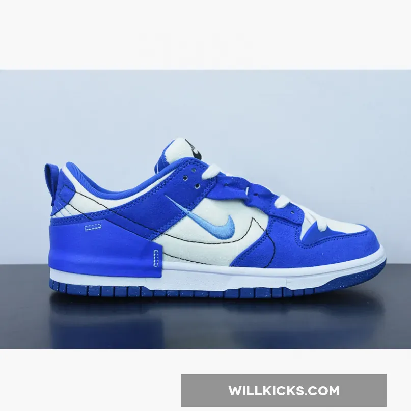 Nike continues its velocity and updates the Nike Dunk Low Disrupt Game Royal look with its all-new Nike Dunk Low Disrupt 2 White Royal, featuring different materials and a mismatched aesthetic.This Dunk Low features a white canvas base on its upper with electric blue overlays in a fuzzy fleece-like material. The side Swooshes on this shoe are deliberately incongruous, with the lateral side featuring an embroidered blue Swoosh atop the outline of another Swoosh below it sewn in black and the medial side showing only the outline of a Swoosh in blue. You’ll know that this shoe is sustainable because of the uneven Pinwheel logos on the insoles.